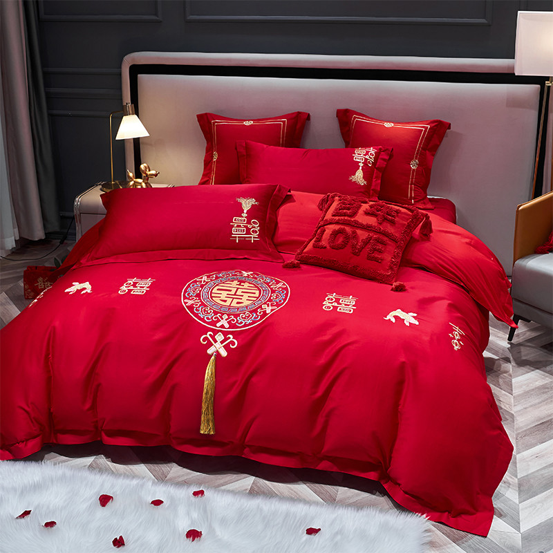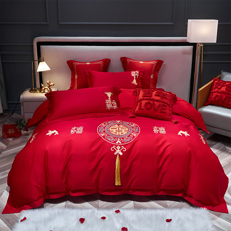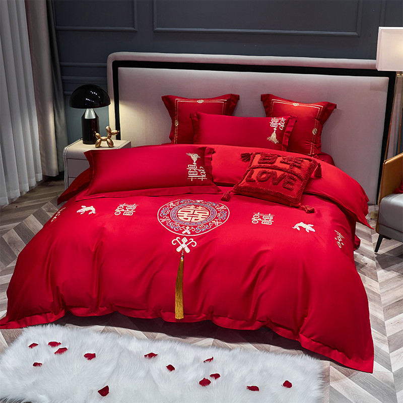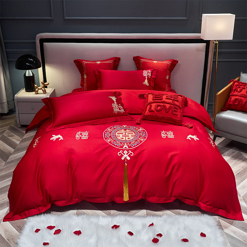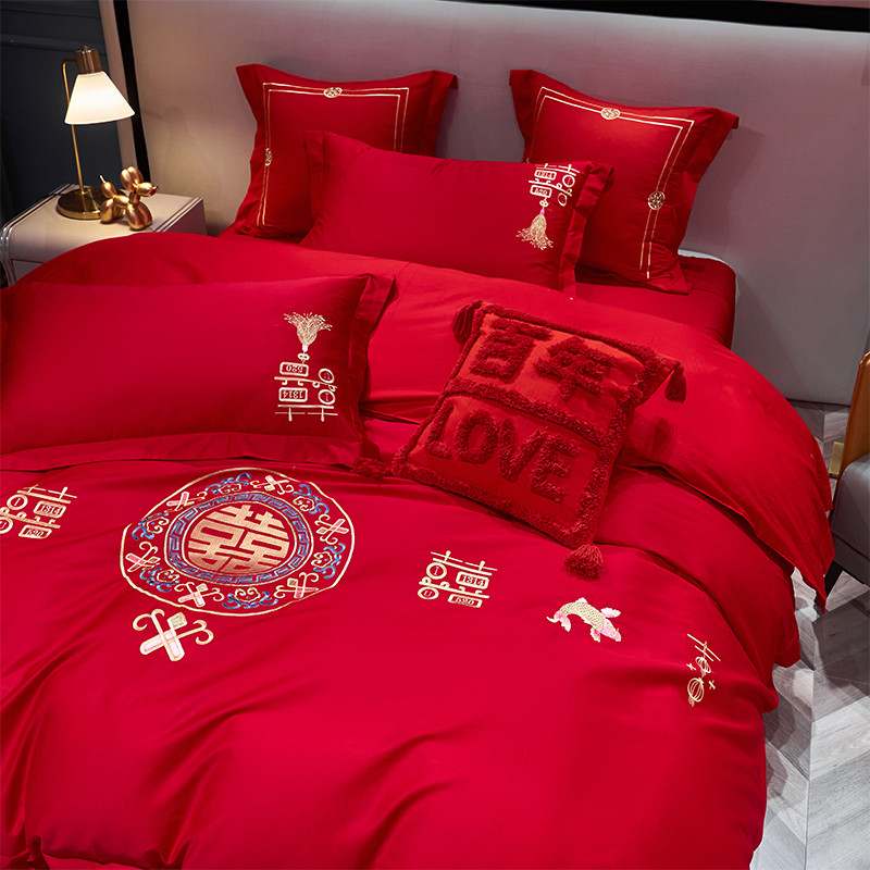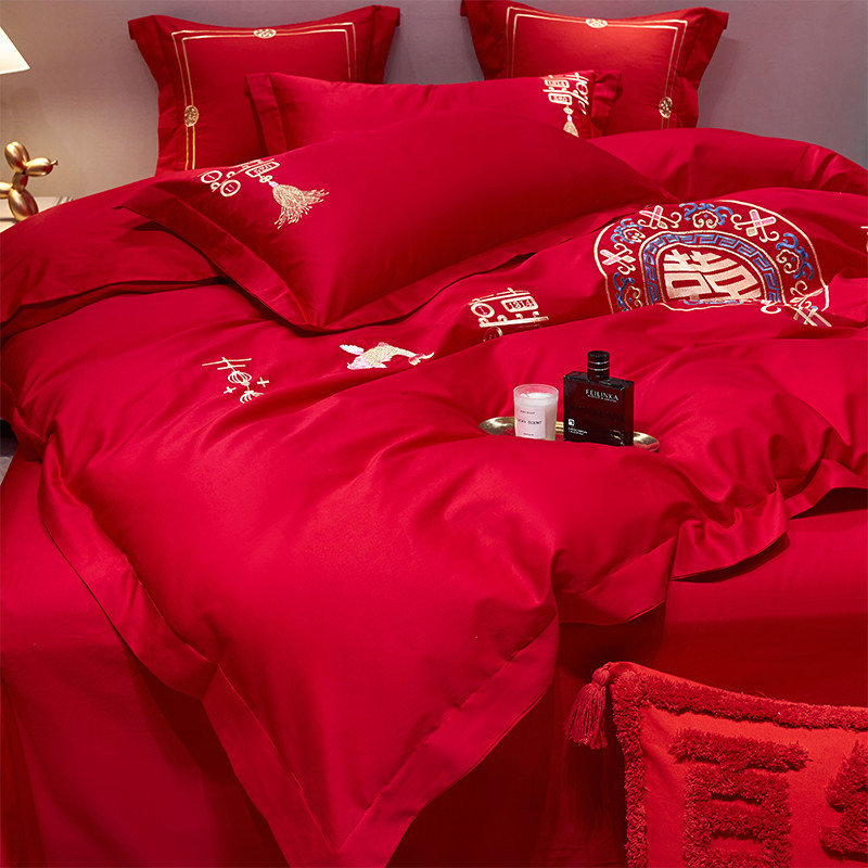 (总)用心 2026年新款双面长绒棉提花婚庆刺绣四件套,喜上喜,禧爱,吉祥