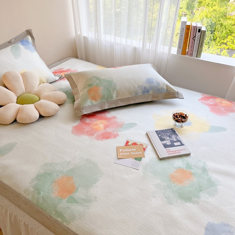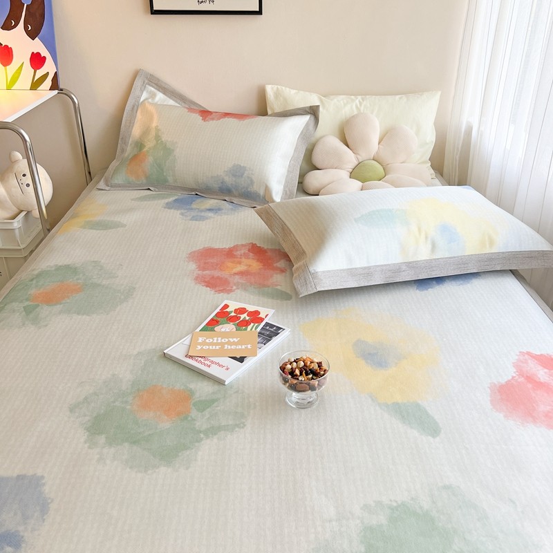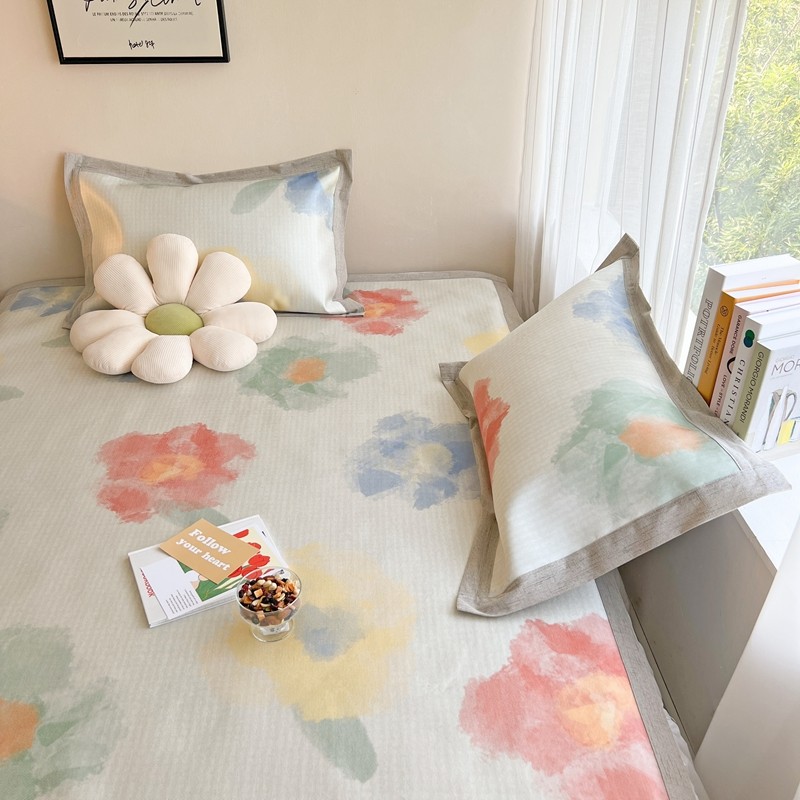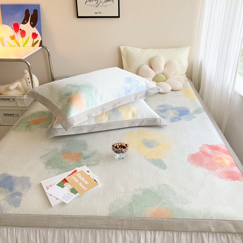 时年 2022新款全工艺环保数码印花高品质水洗冰丝凉席 春田花花