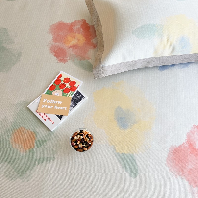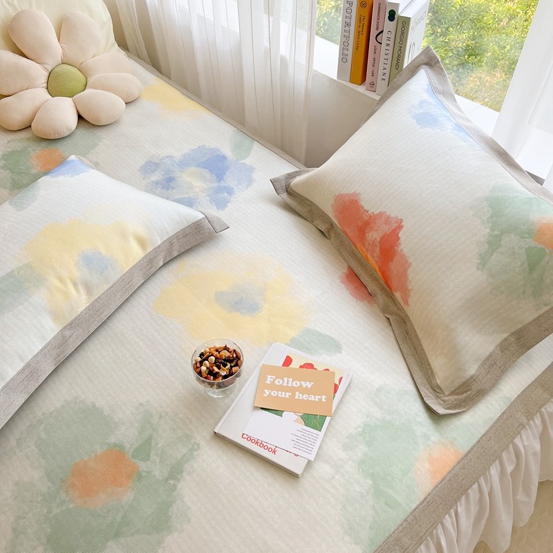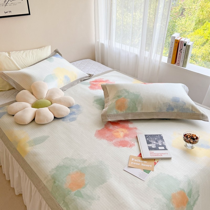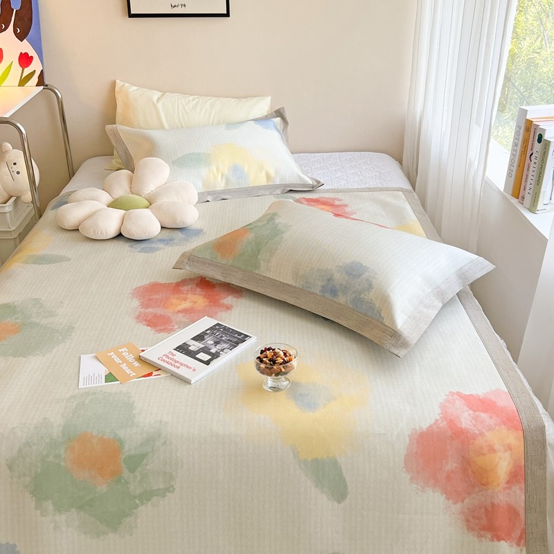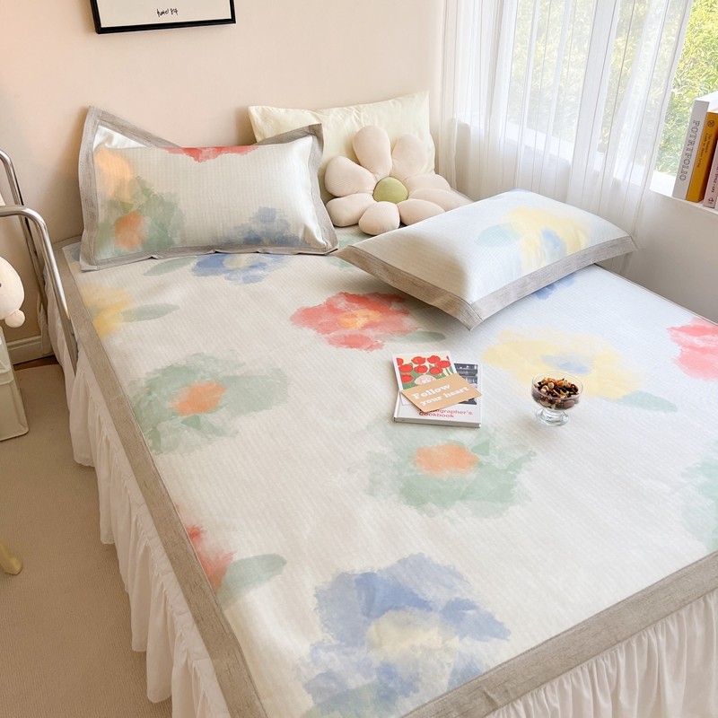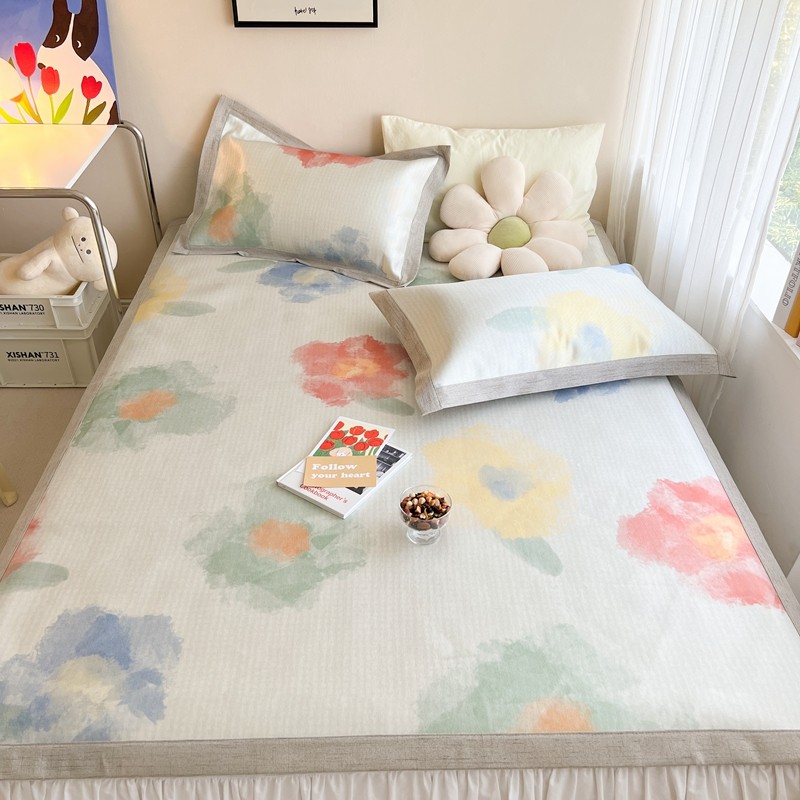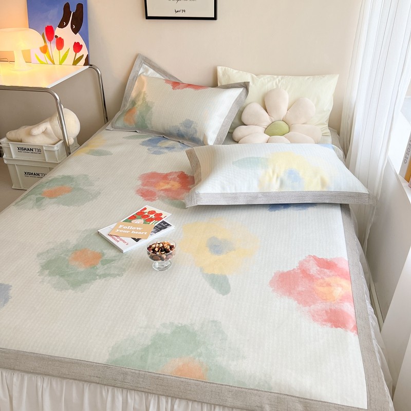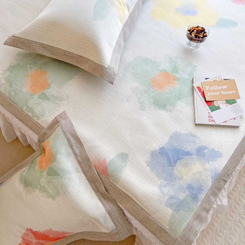 商品名称:时年 2022新款全工艺环保数码印花高品质水洗冰丝凉席 春田花花