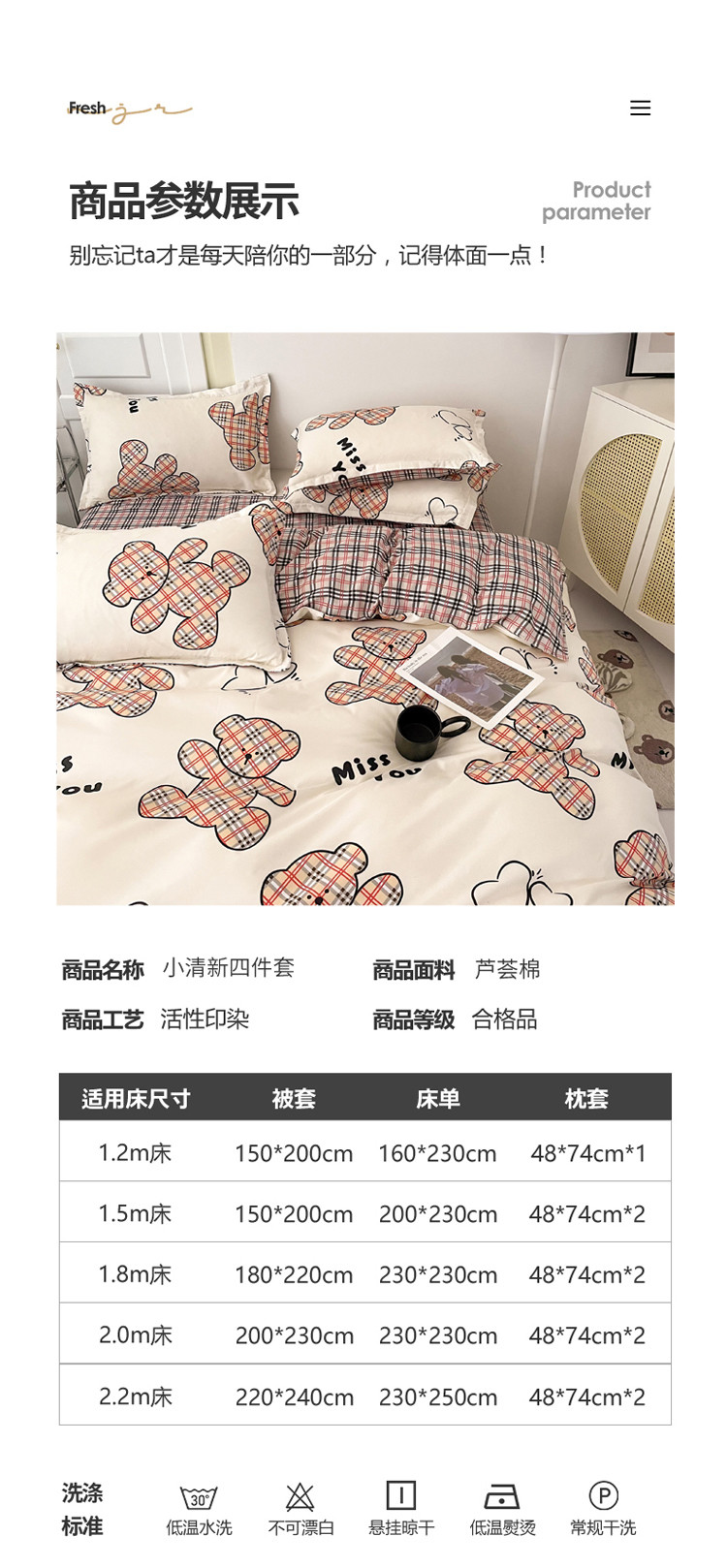 商品名称:米粒 2022新款芦荟棉四件套 巴宝熊