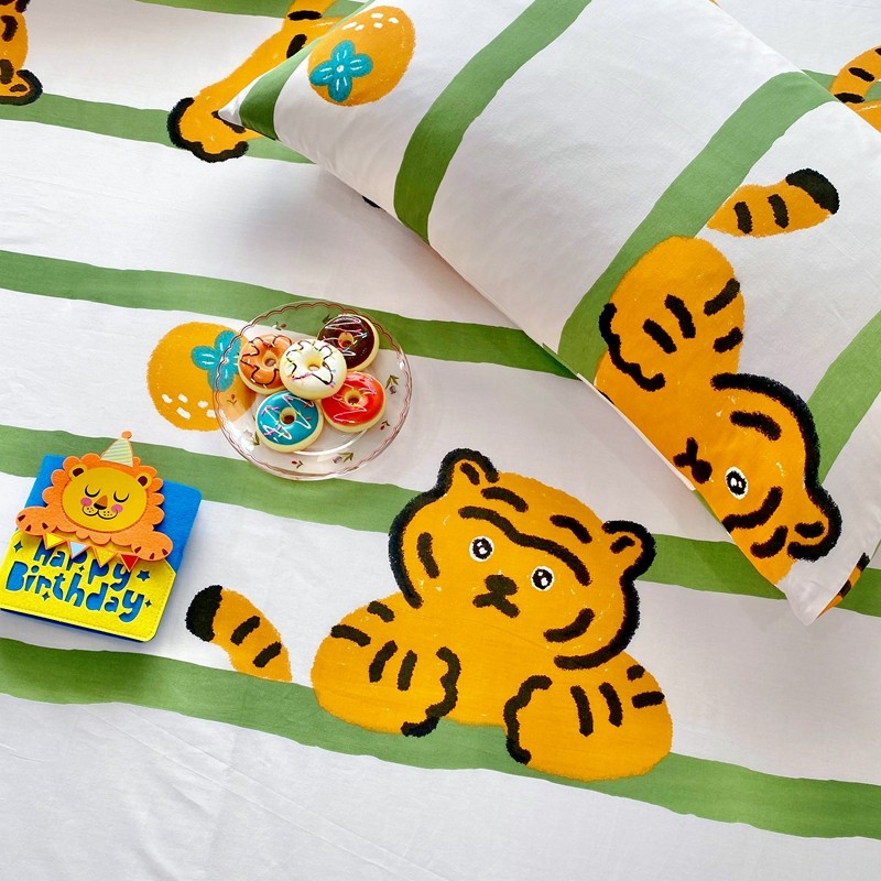 (总)金丝鸟家纺 2026新款全棉双层纱毛球款枕套多规格儿童枕套,叠拍组合图仅供展示,查理卧室,奇迹动物园 米,软萌游园会,吐司乐园