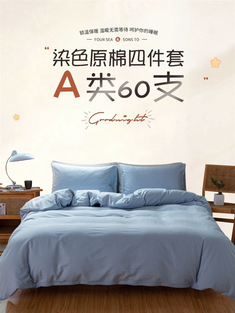 当前位置: 91家纺网 > 商品网购 > 床品套件 > 四件套 > 全棉普通四件套 > 安莱生活 2022新款染色原棉四件套 雾青-小雨点