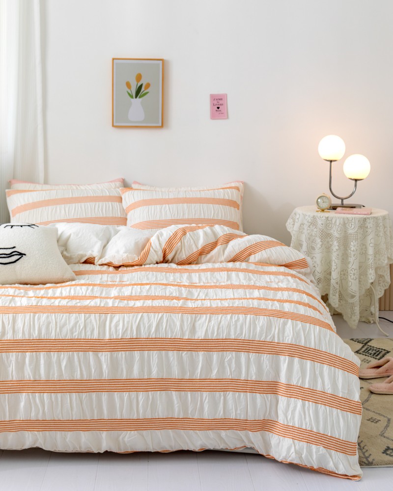 商品名称:简家居 2022新款泡泡纱四件套 泡芙-橙