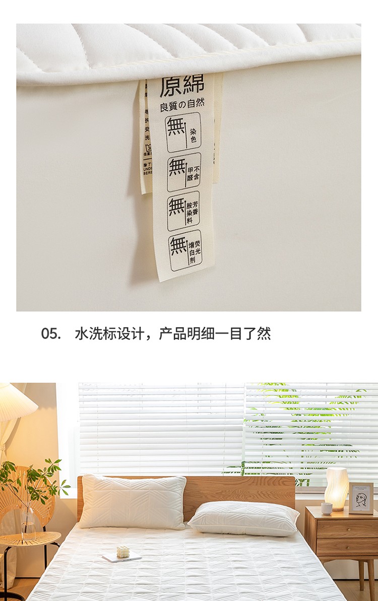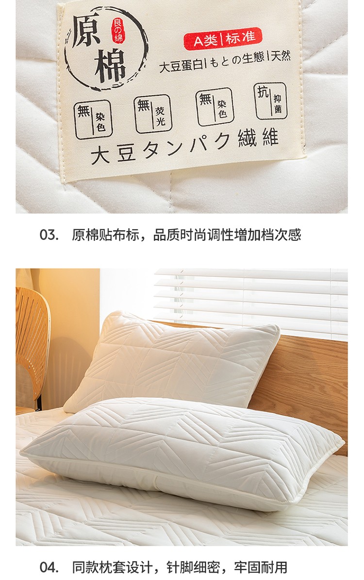 给笠 2023新款A类原棉夹棉大豆床笠 几何格-米白