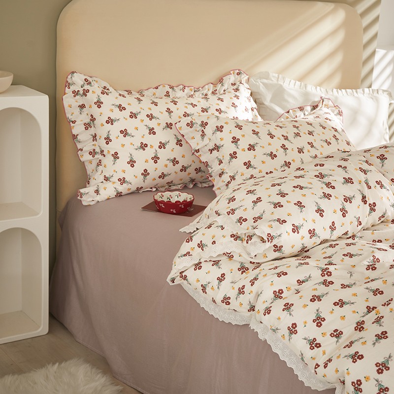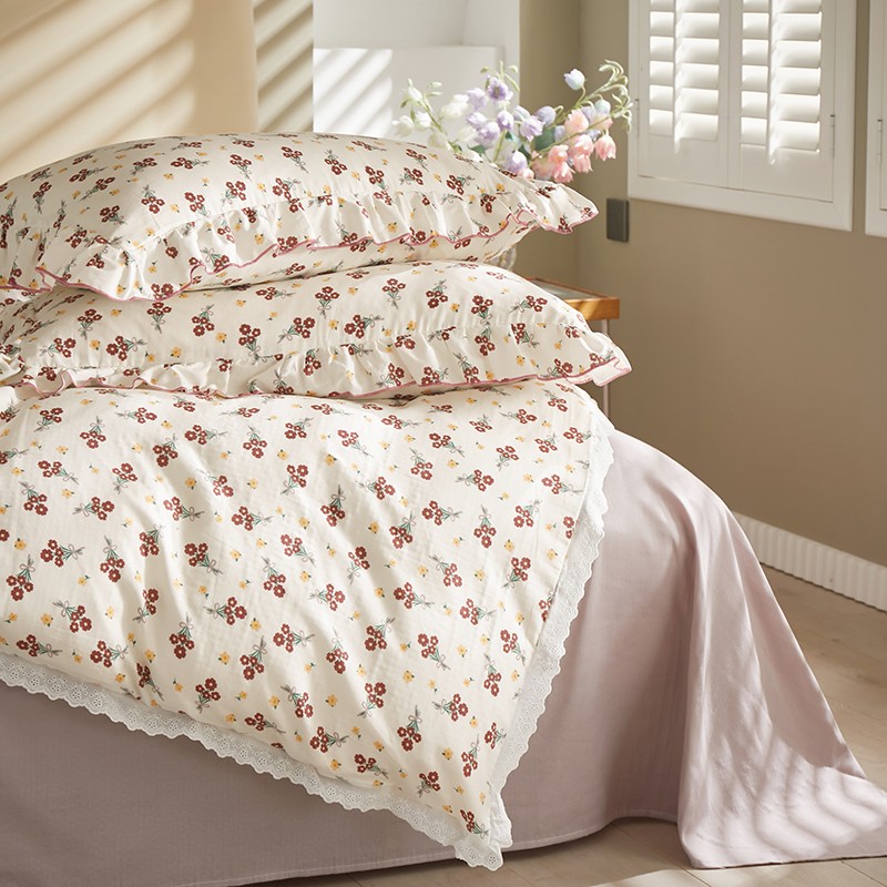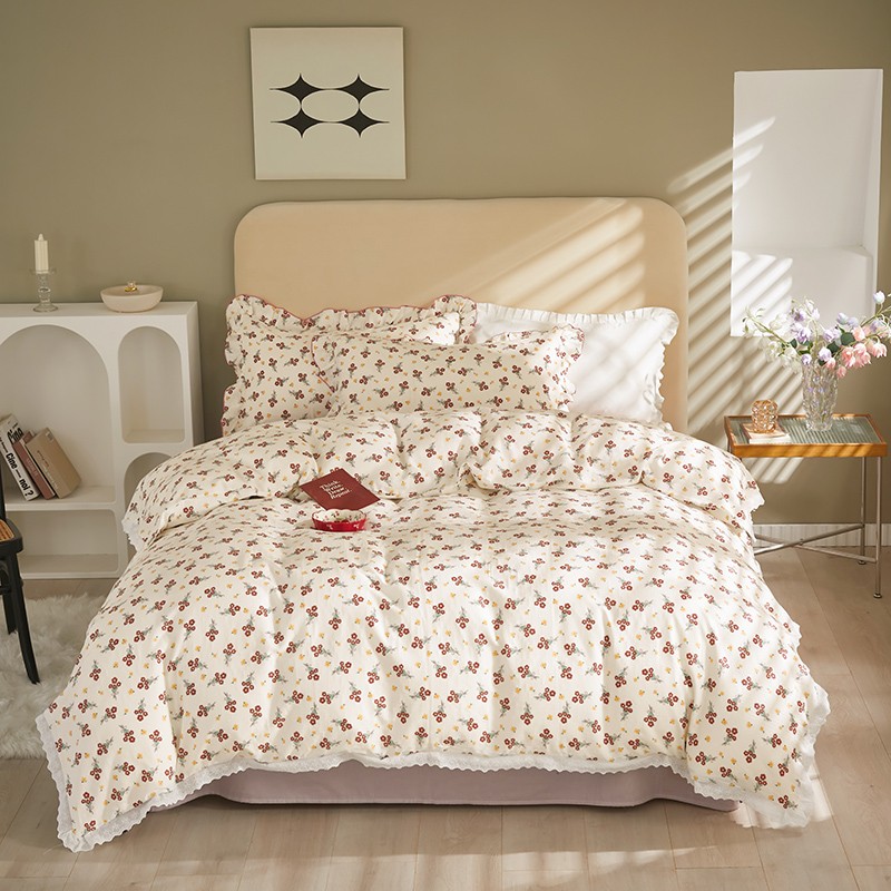 (总)怡家居 2025新款全棉纯棉磨毛数码印花韩系花边四件套,初暖,兰序,阑珊,浪漫,玛丽亚,茵然,语棠,珍妮,紫蘑菇