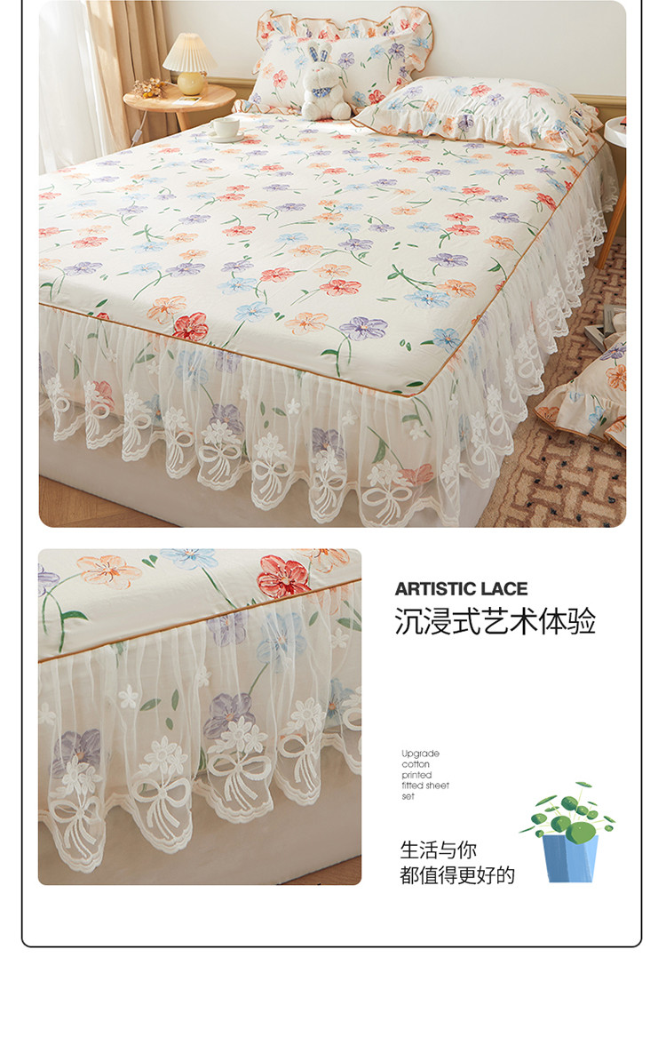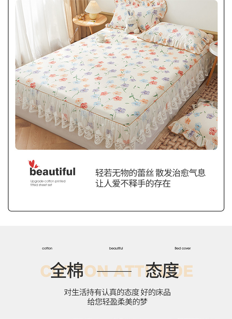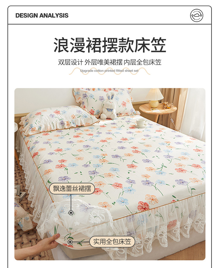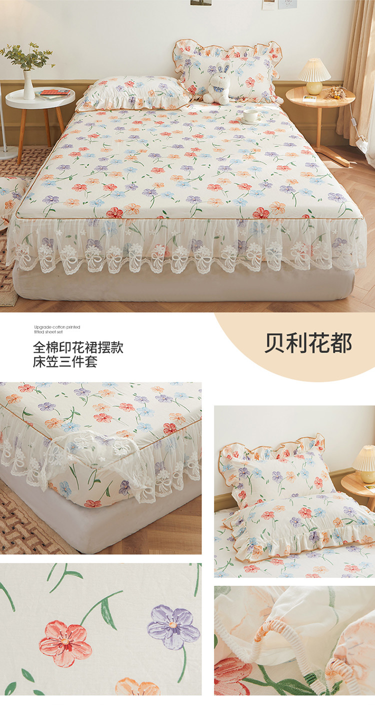当前位置: 91家纺网 > 商品网购 > 床品套件 > 三件套 > 宜凡 2023新款全棉印花单层裙边系列-床笠三件套 贝利花都