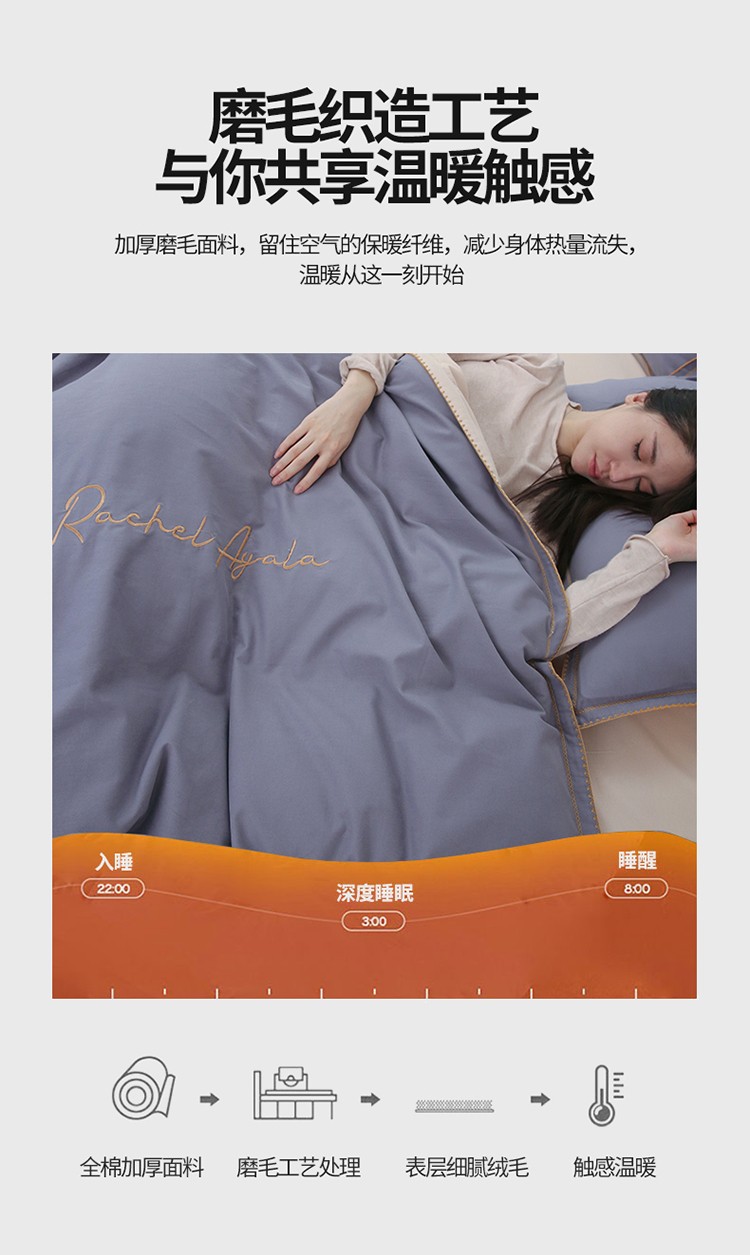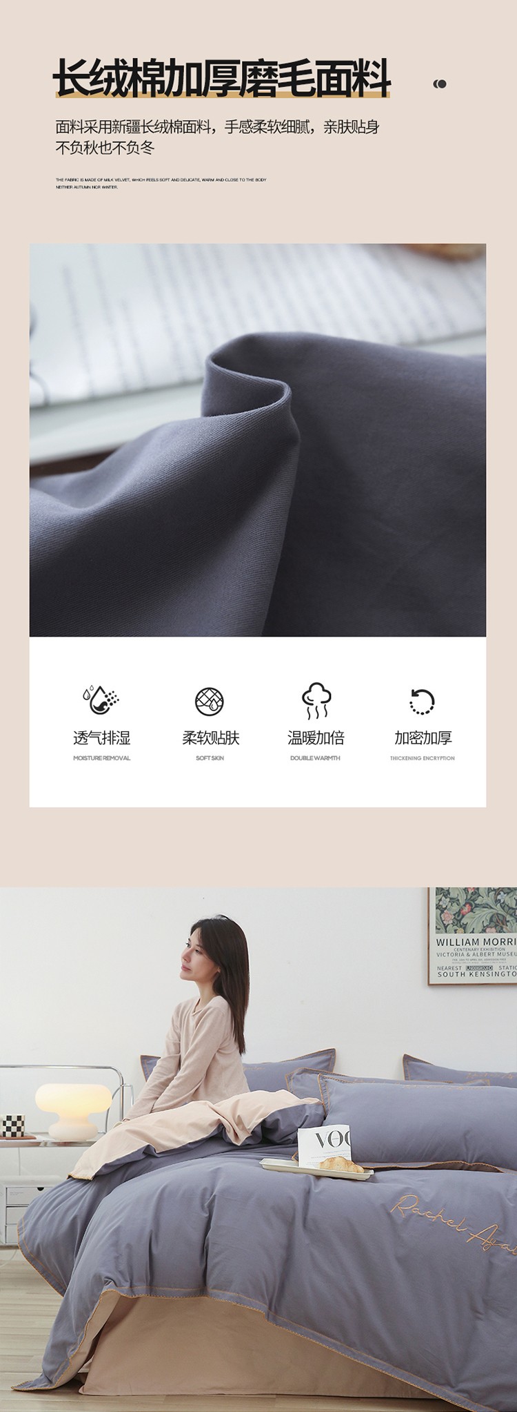 商品名称:艾莱2023新款A类新疆长绒棉加厚柔顺磨毛四件套瑞秋-蓝莓灰