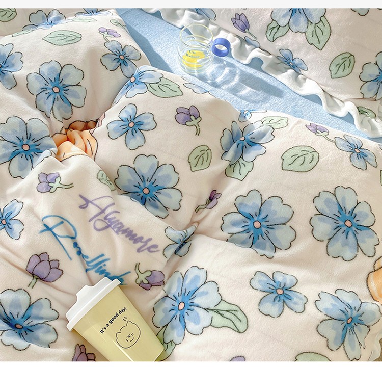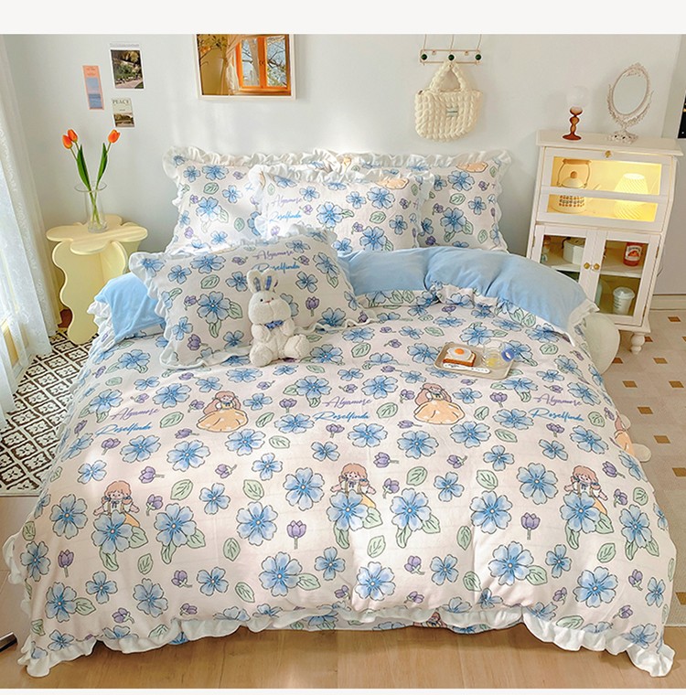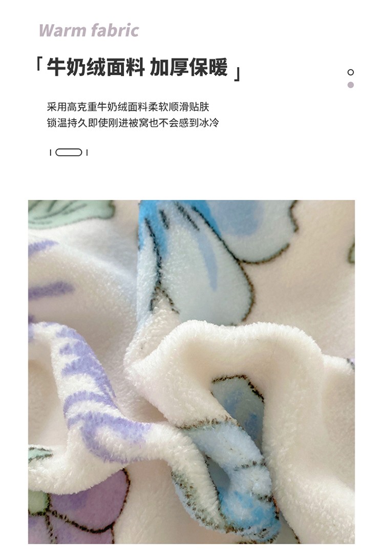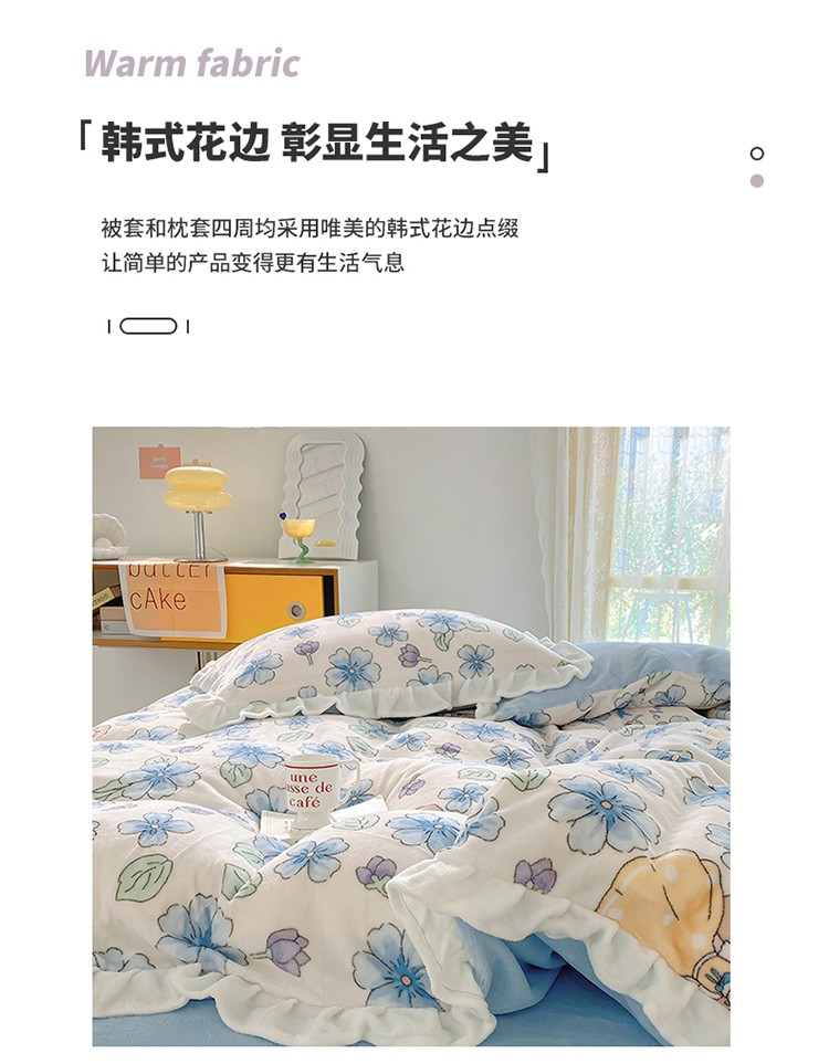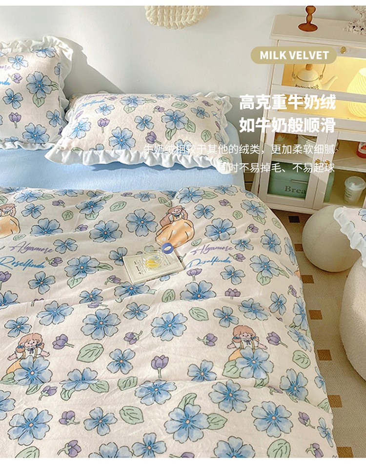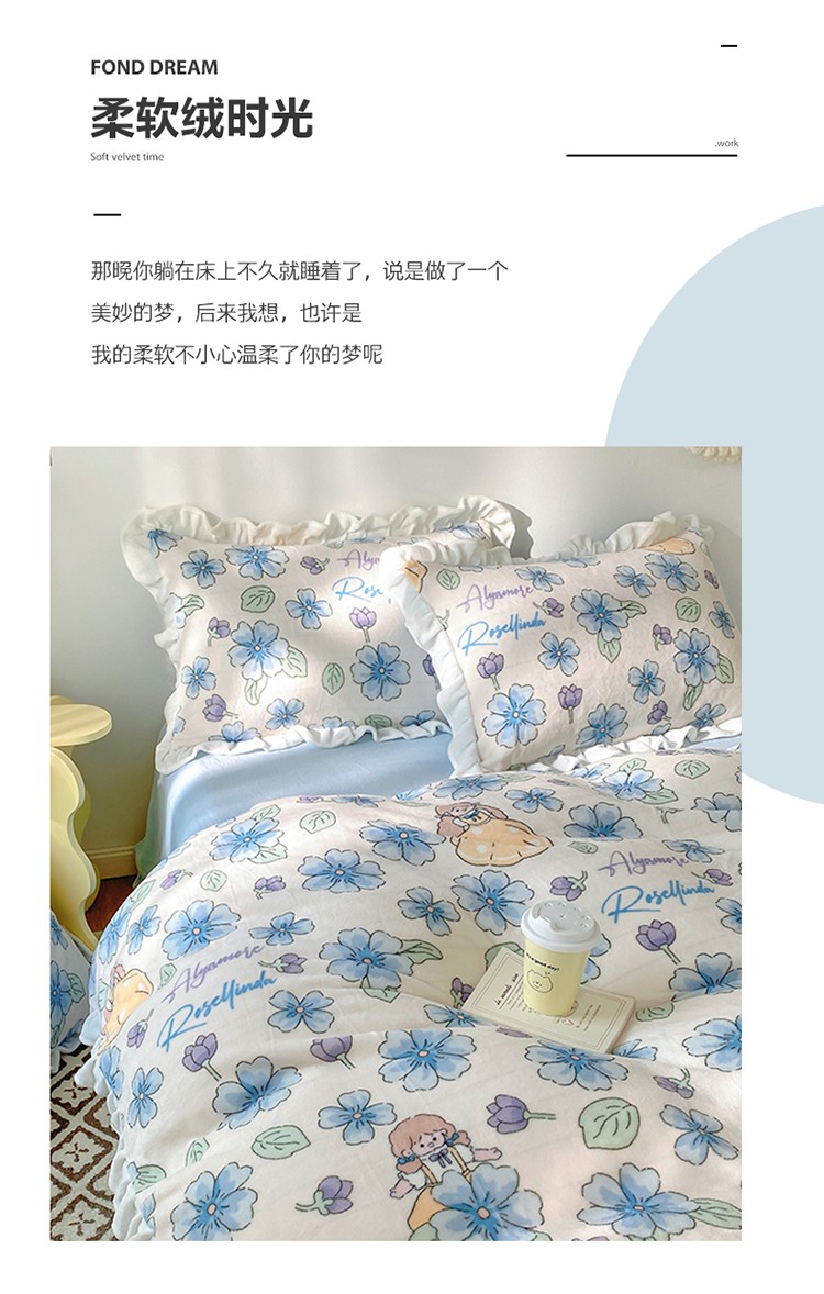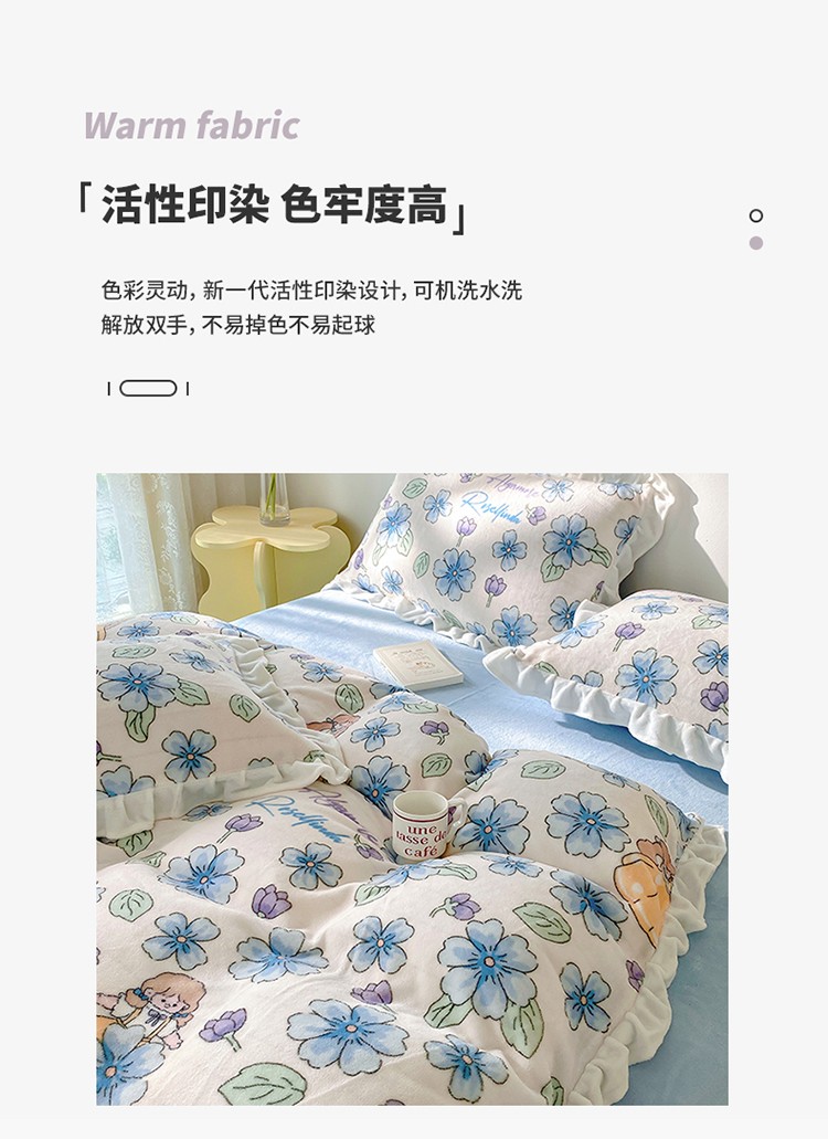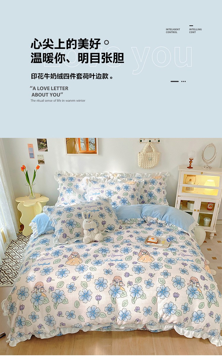 呗旺鹿2022新ykk拉链荷叶边印花牛奶绒四件套法莱绒 糖宝