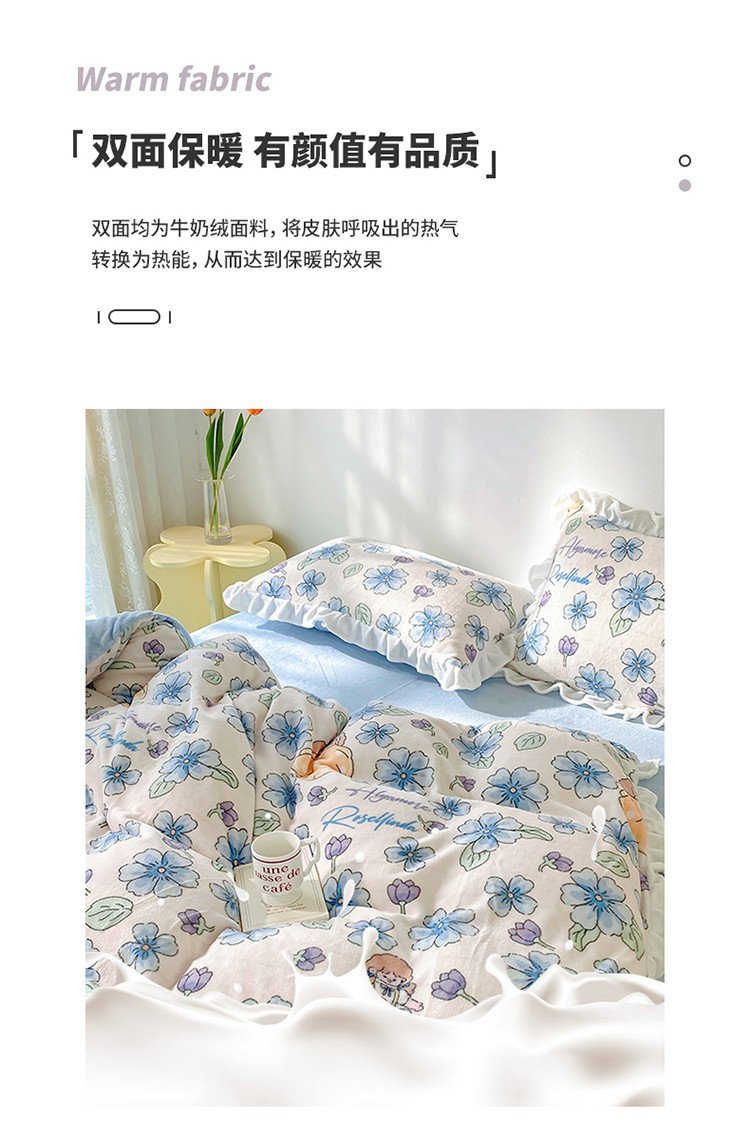(总)呗旺鹿 2025新款卡通棉+绒牛奶绒棉绒四件套,心意满满,快乐魔法,闹钟麦田