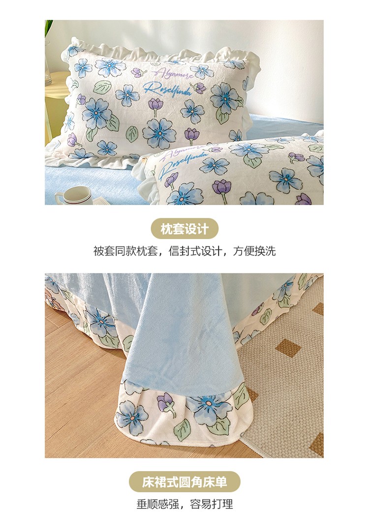商品名称:呗旺鹿2022新ykk拉链荷叶边印花牛奶绒四件套法莱绒 糖宝