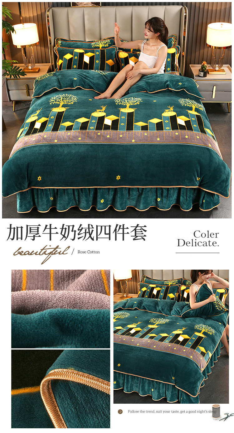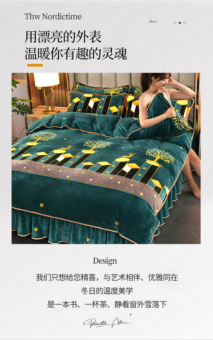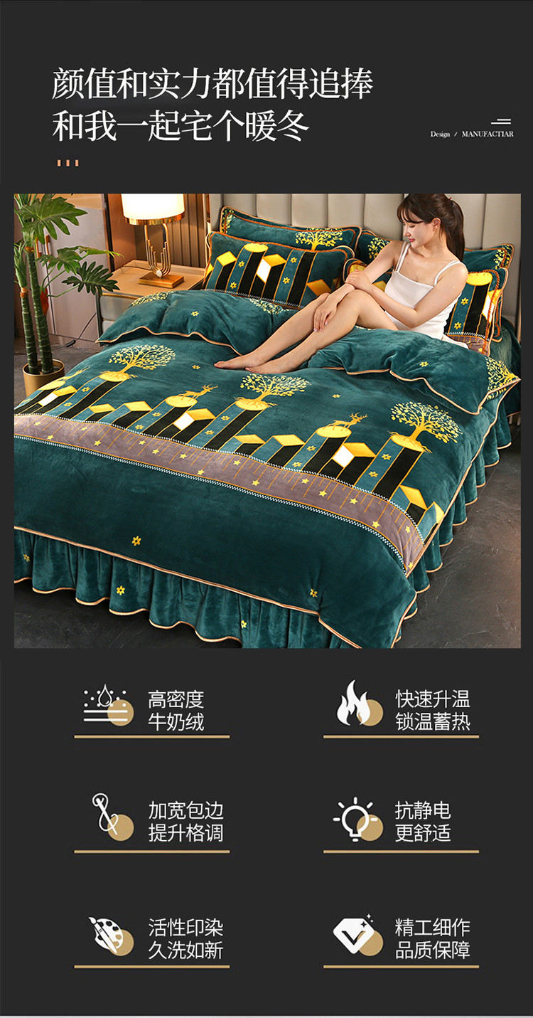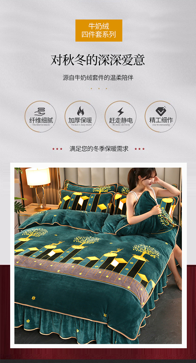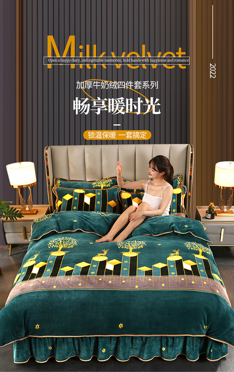 佳一 2022新款230g保暖牛奶绒四件套 步步高升