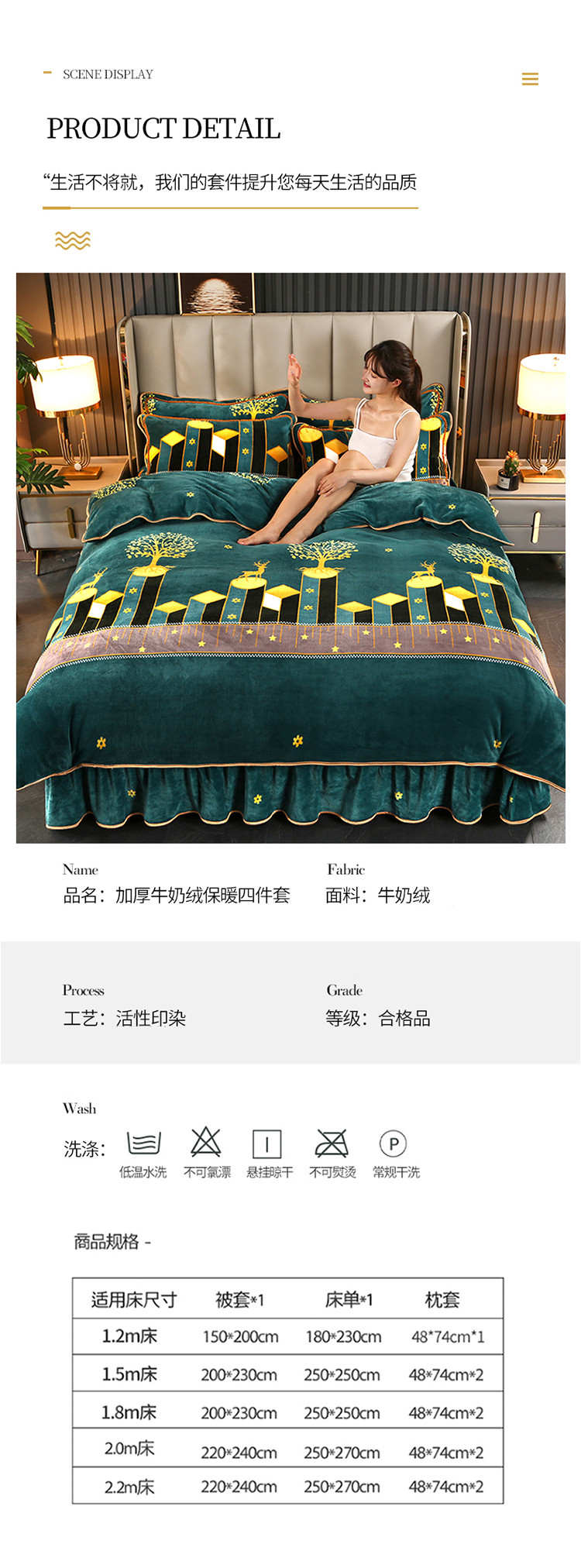 商品名称:佳一 2022新款230g保暖牛奶绒四件套 步步高升