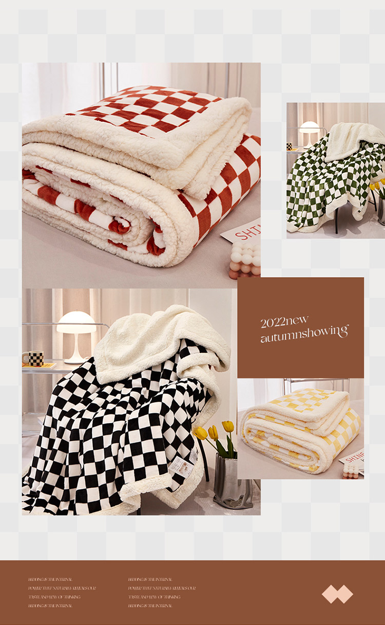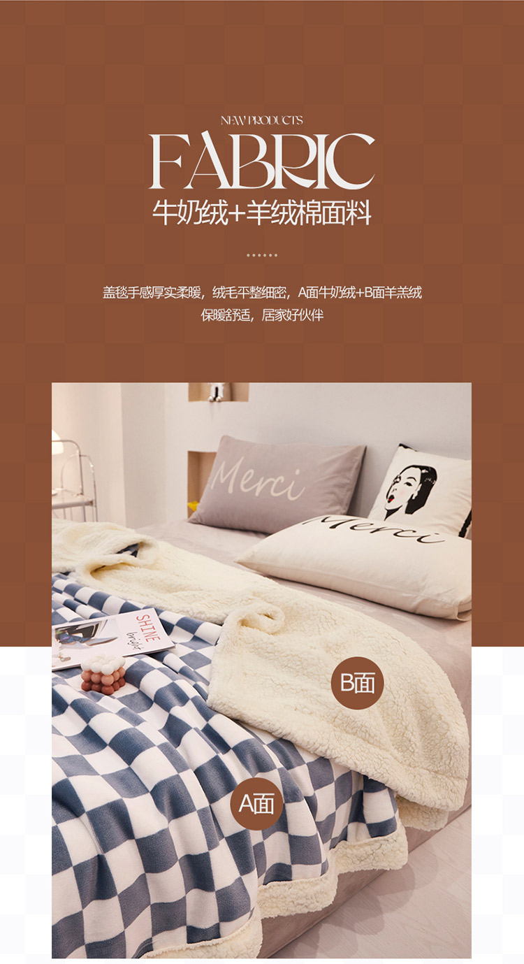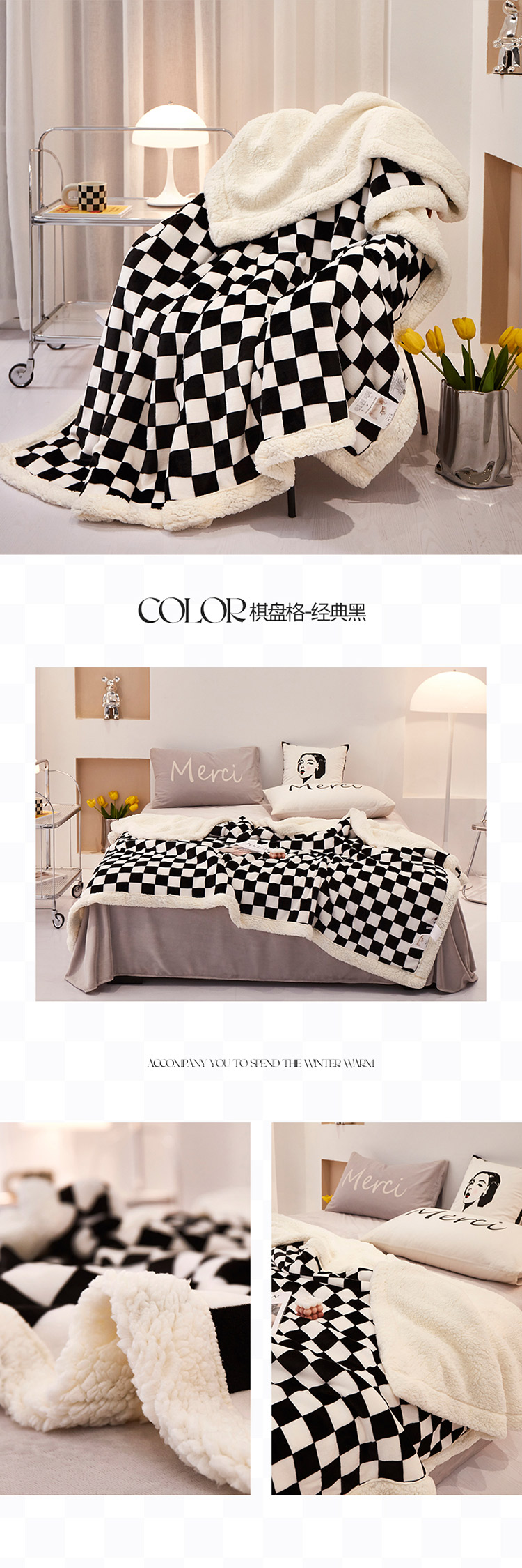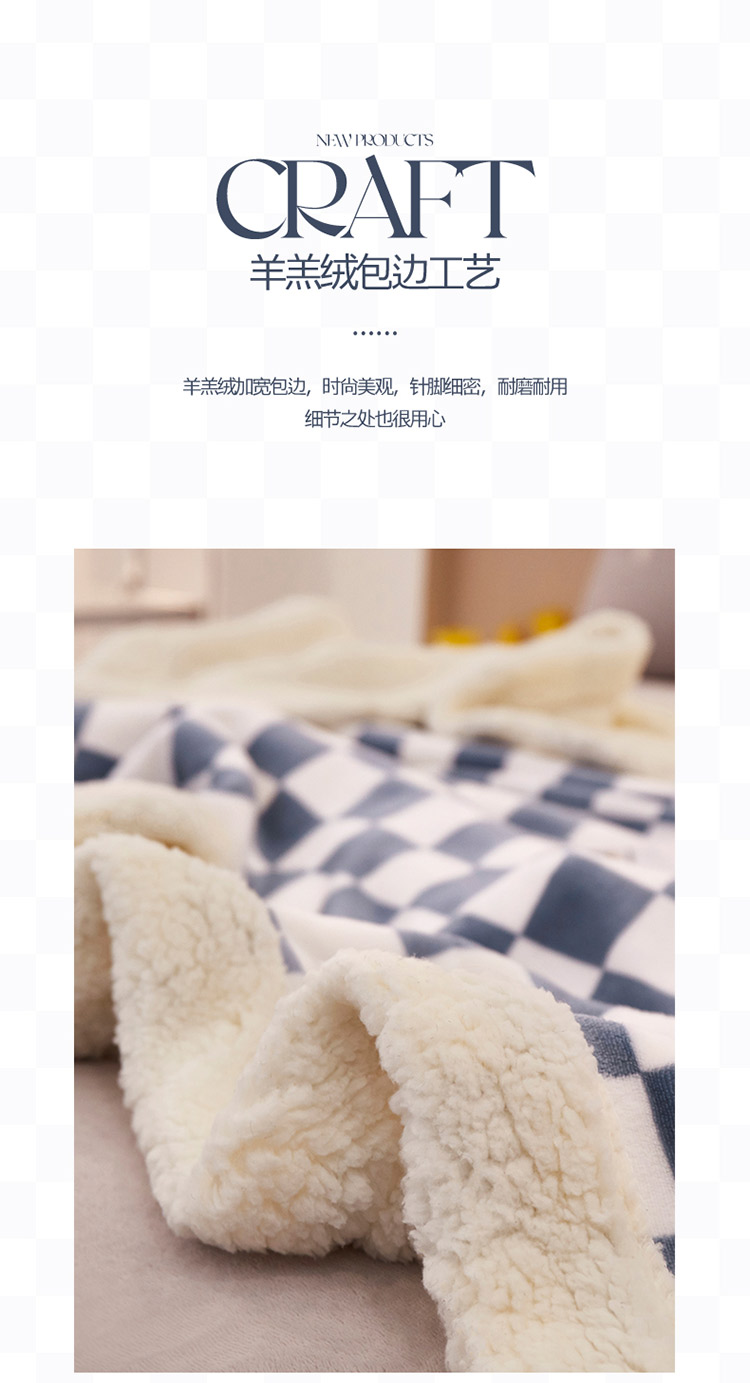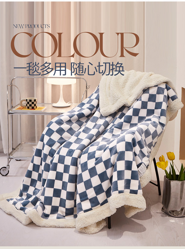 商品名称:席之家 2024新加厚保暖棋盘格羊羔绒毛毯盖毯子 牛仔蓝
