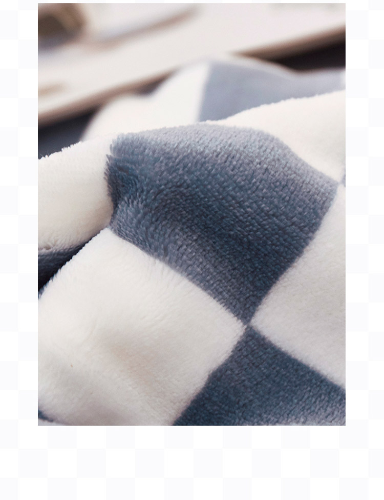 席之家 2024新加厚保暖棋盘格羊羔绒毛毯盖毯子 牛仔蓝