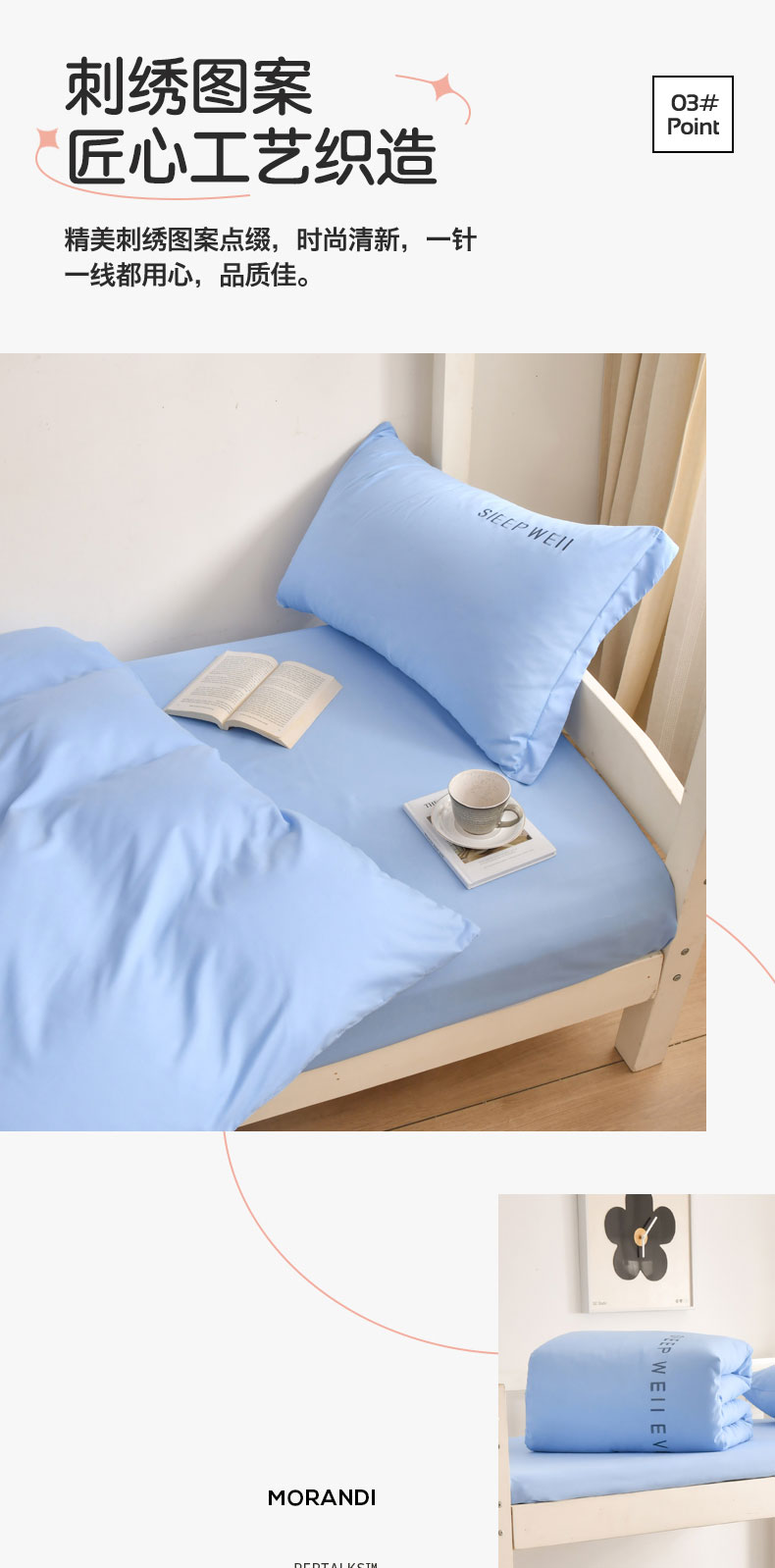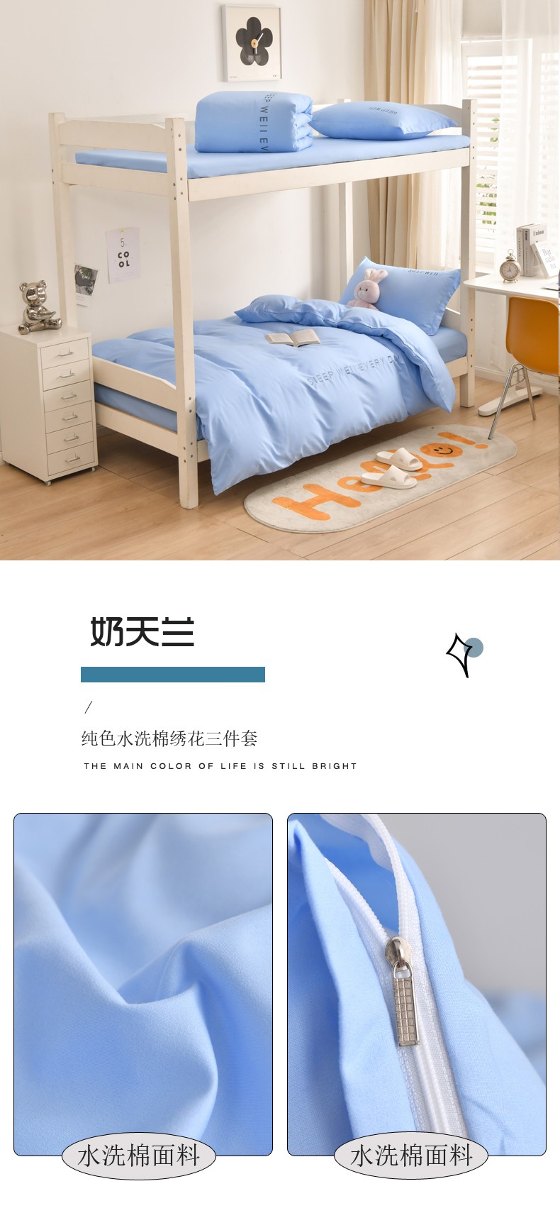 商品名称:啊雅家居纯色水洗磨毛亲肤绣花床单款床笠款学生三套件奶天兰