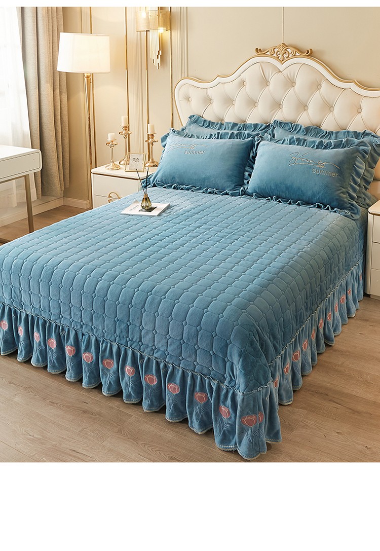 (总)恒爱 2022秋冬水晶绒翩翩花舞夹棉床裙四件套,大红色,豆沙红,橄榄绿,公主粉,桔色,咖啡色,孔雀绿,拉菲红,罗兰紫,玫红色,美人玉,米白色,米驼色,抹茶绿,浅灰色,紫色