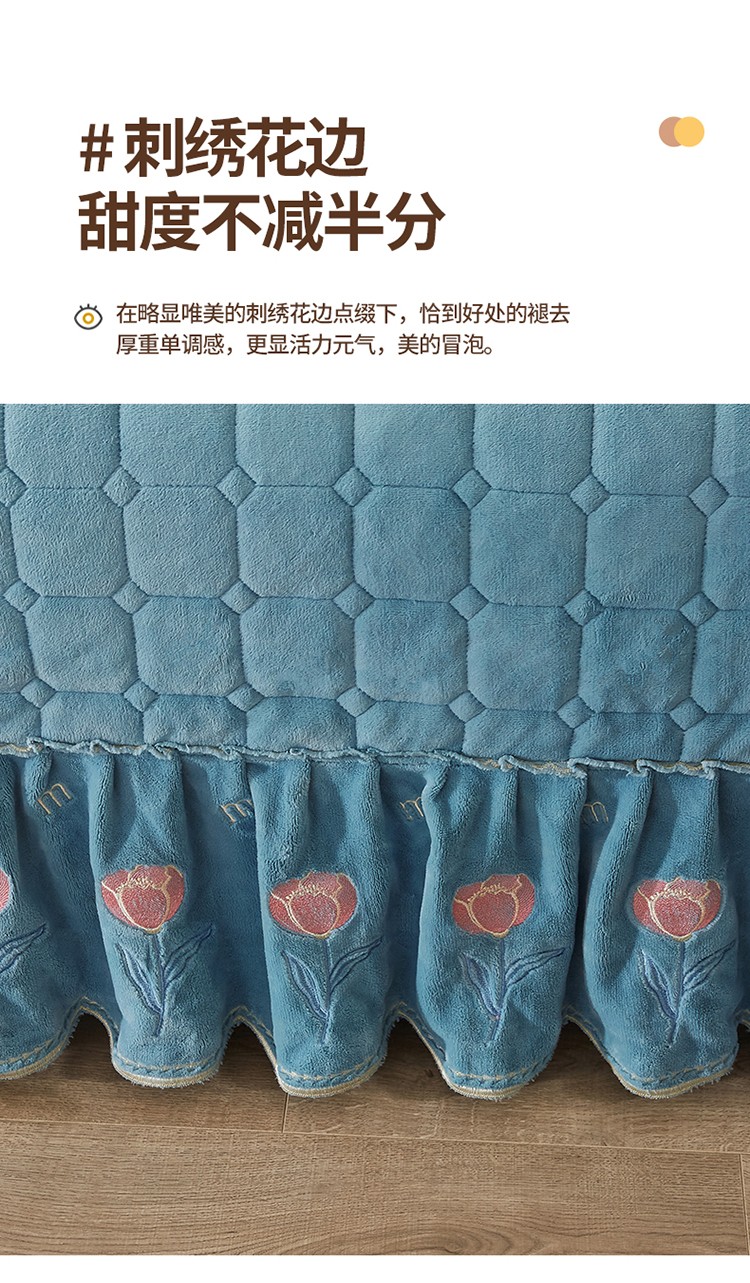 (总)恒爱 2022新款秋冬轻奢宝宝绒刺绣单床裙,爱玛橙,宾利蓝,豆沙红,橄榄绿,高级灰,酒红,梦想粉,浅灰蓝,温馨粉,喜庆红,香妃粉,香芋紫