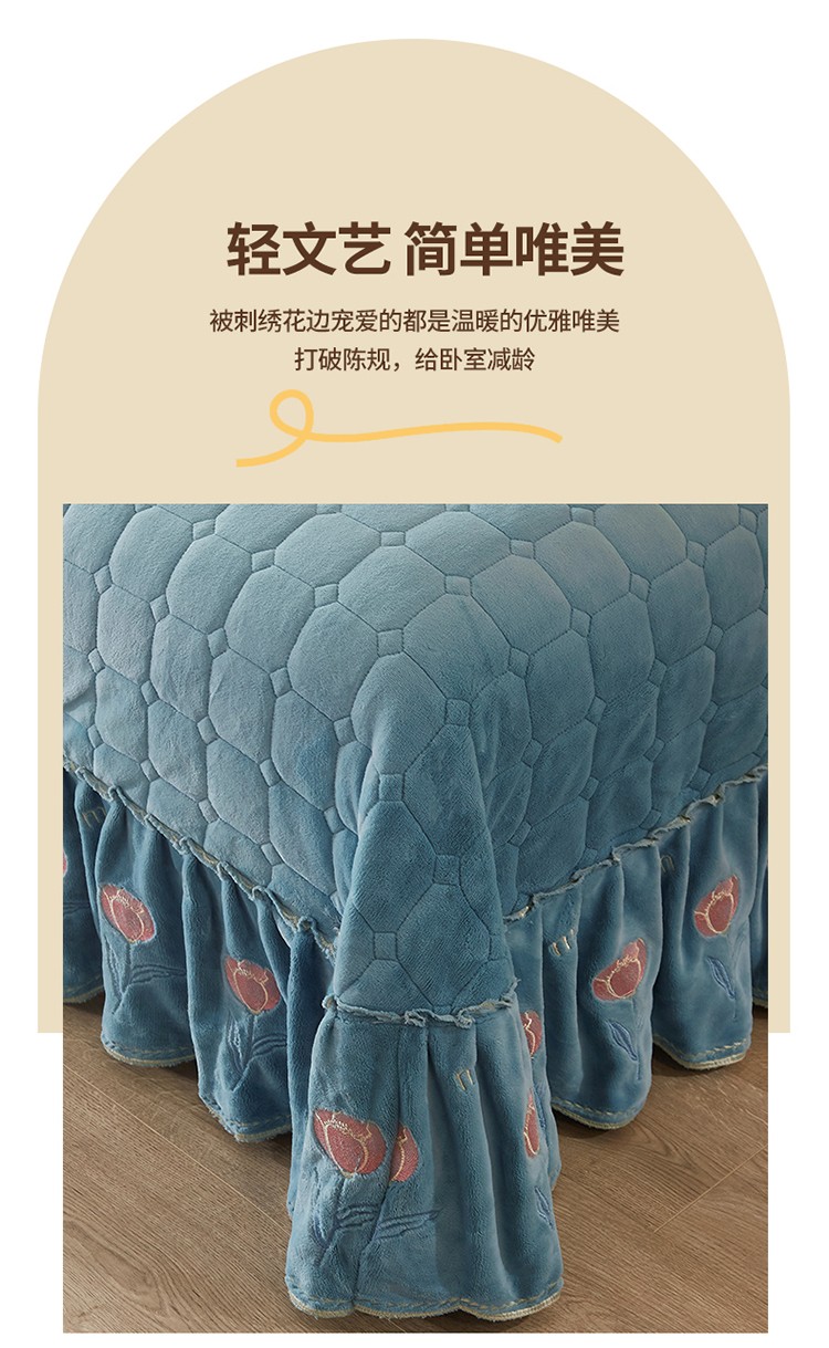 (总)恒爱 2022秋冬水晶绒翩翩花舞夹棉单床裙,大红色,豆沙红,橄榄绿,公主粉,桔色,咖啡色,孔雀绿,拉菲红,罗兰紫,玫红色,美人玉,米白色,米驼色,抹茶绿,浅灰色,紫色