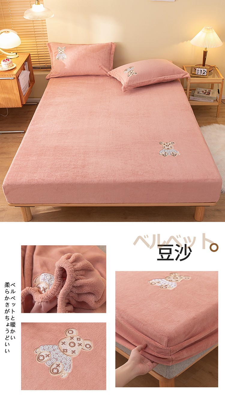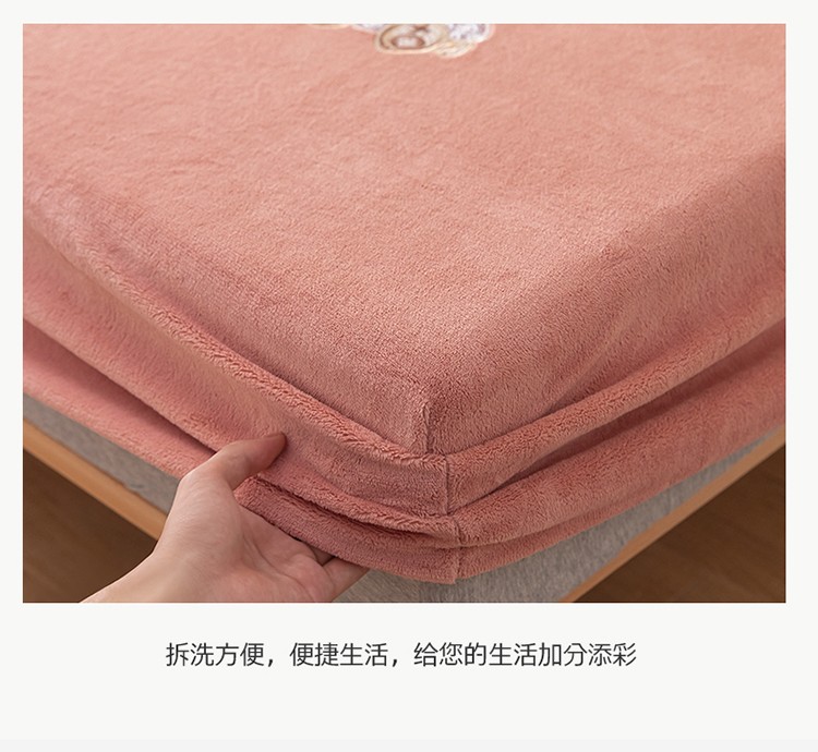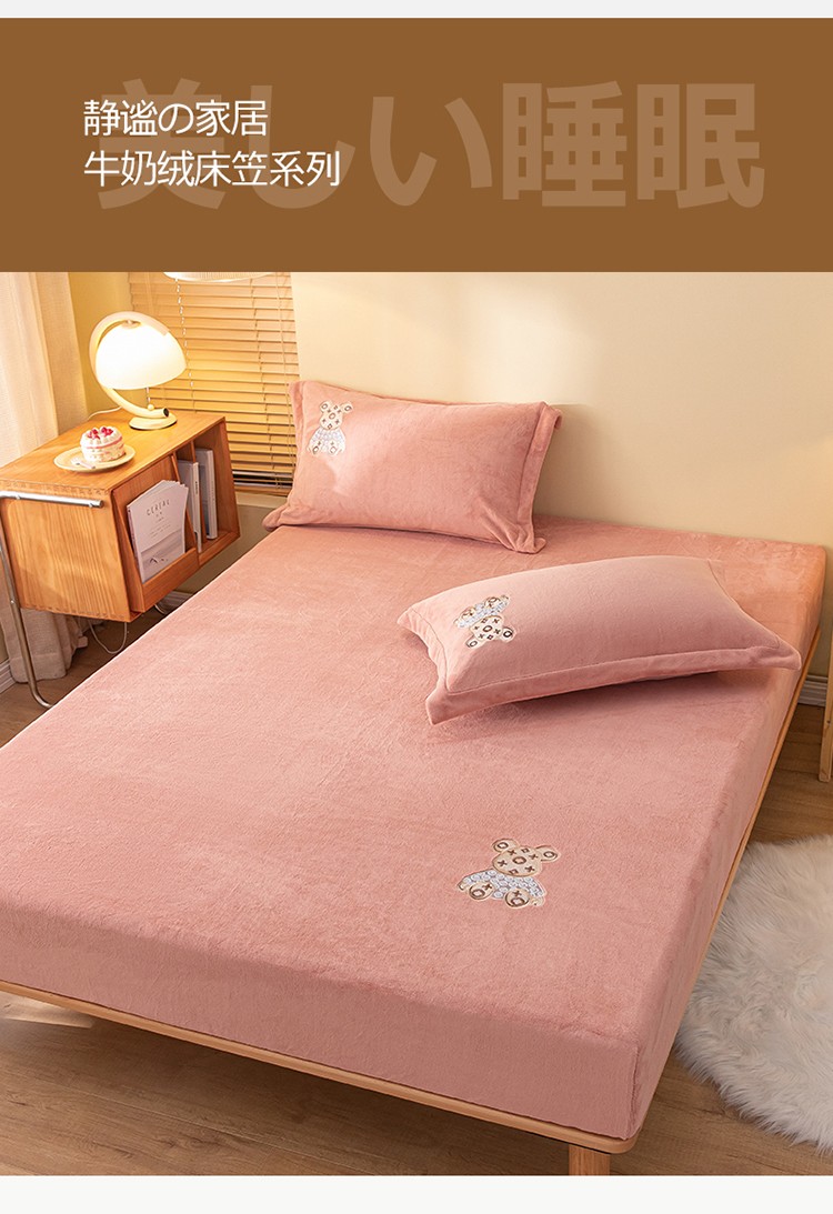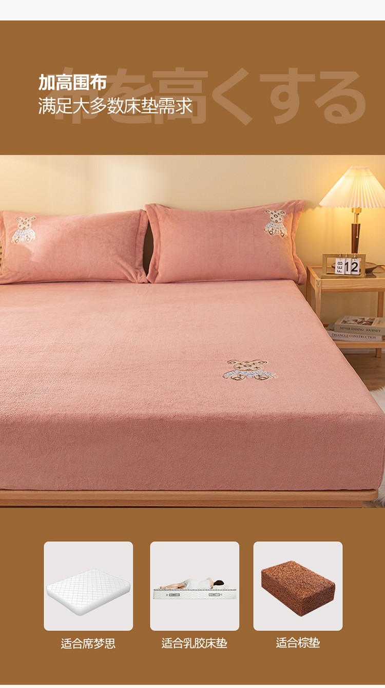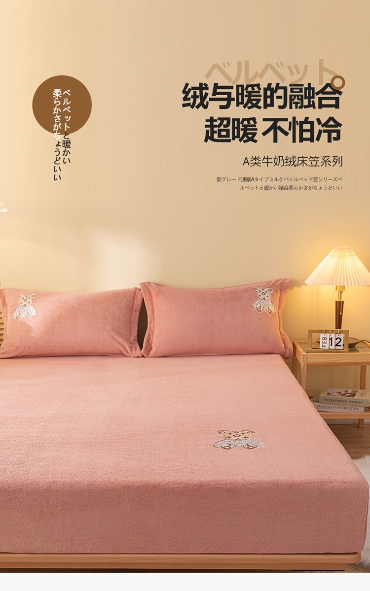 商品名称:蓝米卡夫 2024新款暴力熊A类牛奶绒保暖单床笠 豆沙