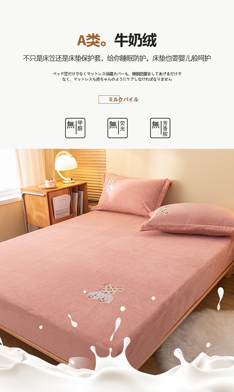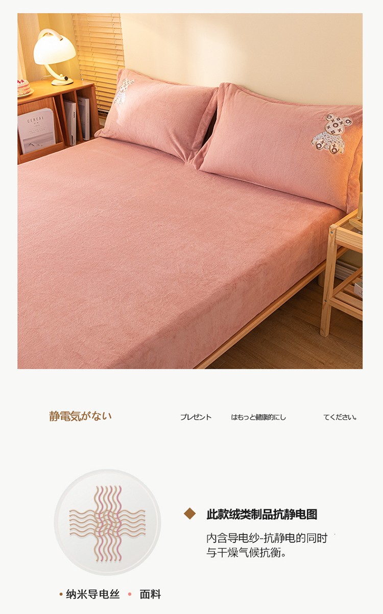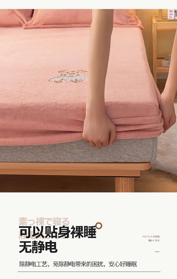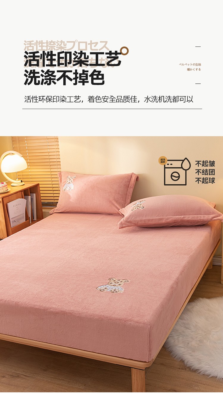 商品名称:蓝米卡夫 2024新款暴力熊A类牛奶绒保暖单床笠 豆沙