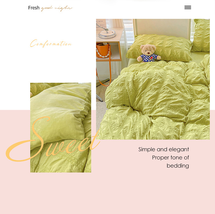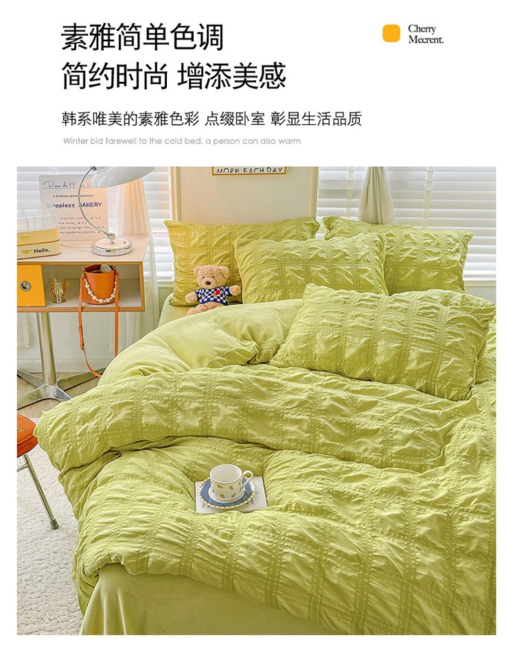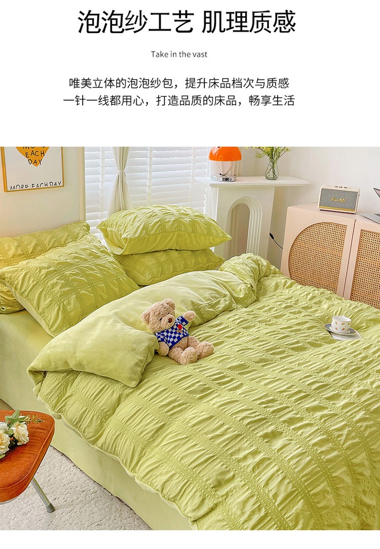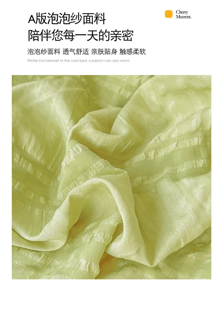 商品名称:寐居 2022新款泡泡纱牛奶绒四件套 泡泡-梦幻果绿