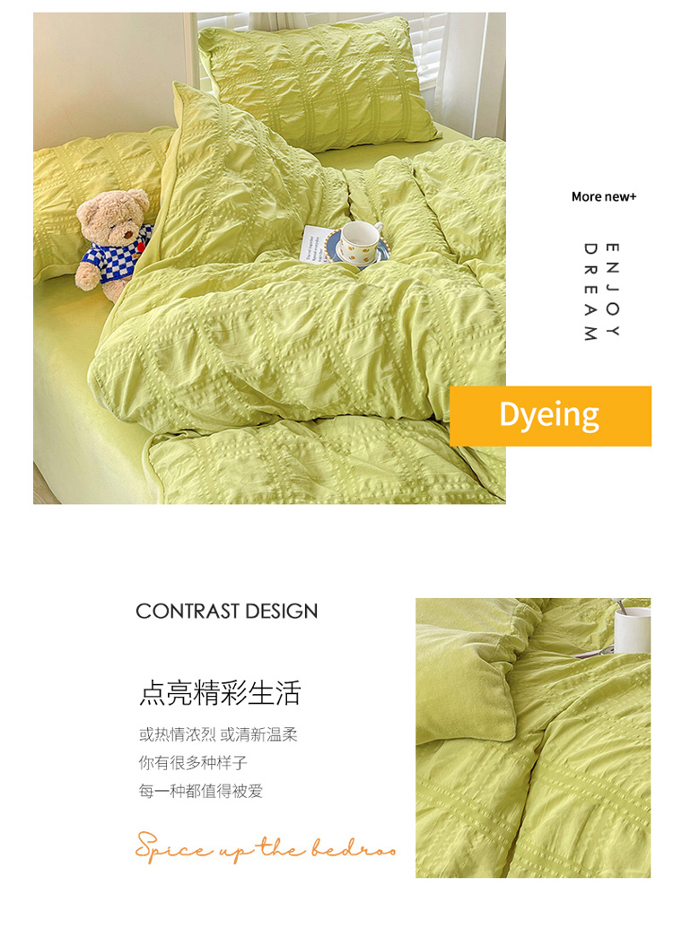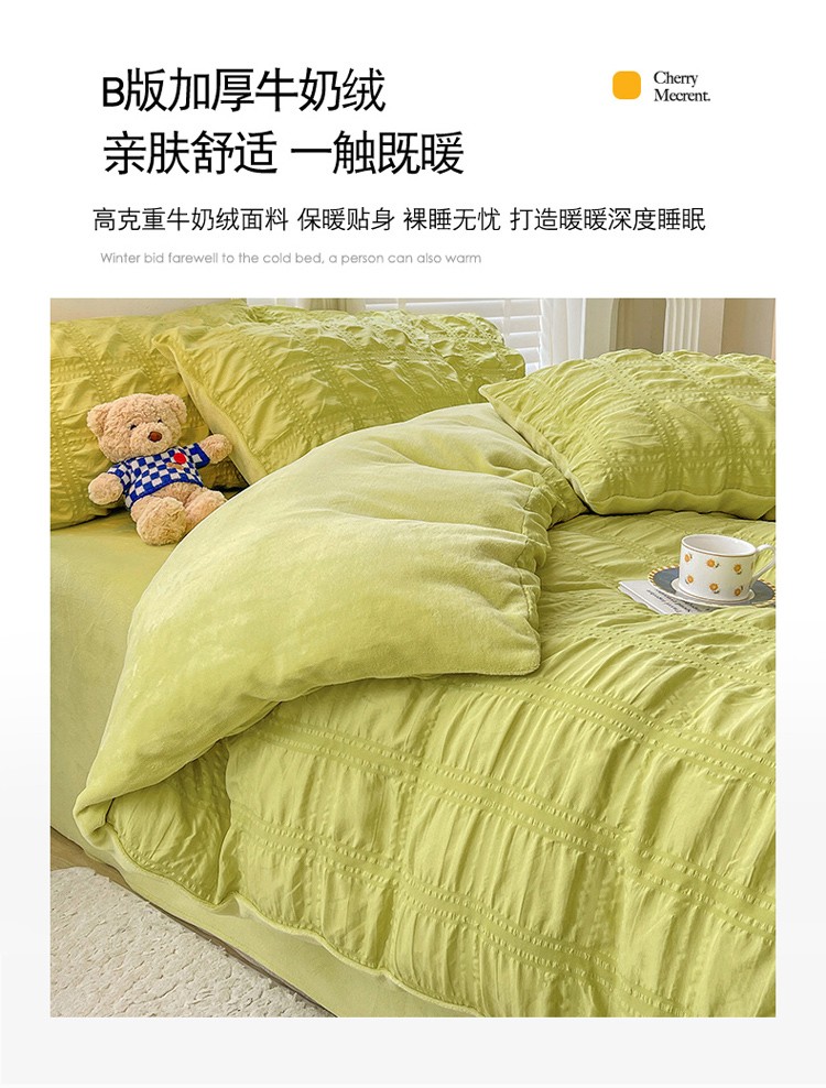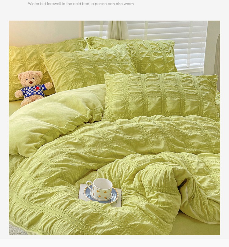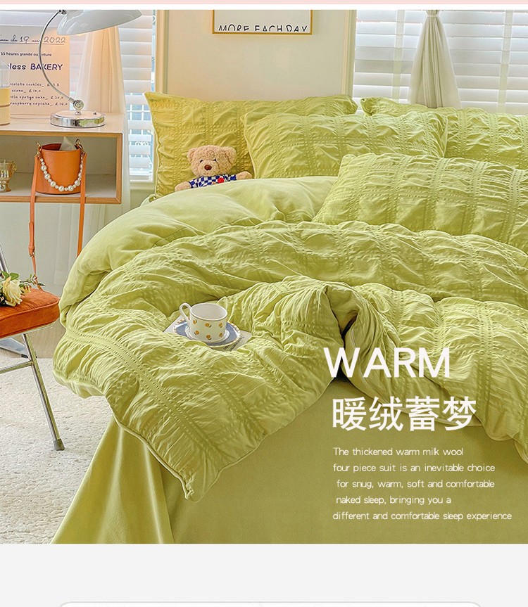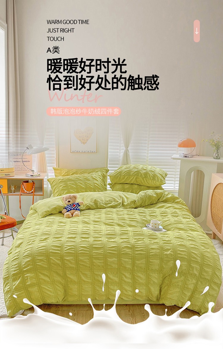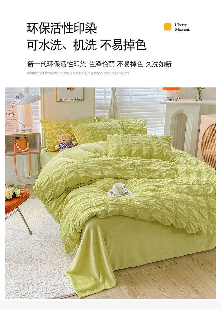 寐居 2022新款泡泡纱牛奶绒四件套 泡泡-梦幻果绿