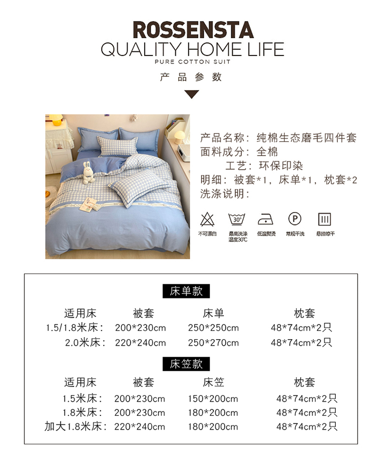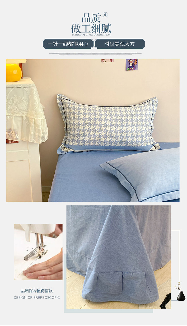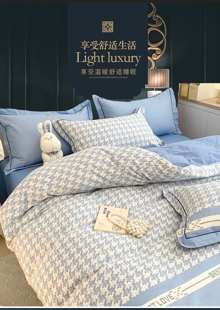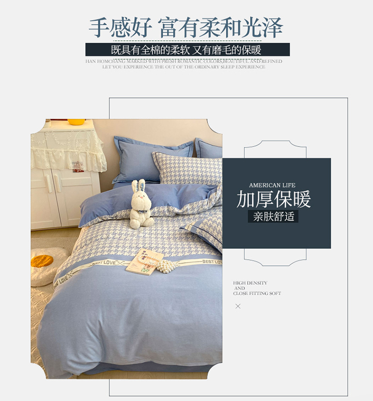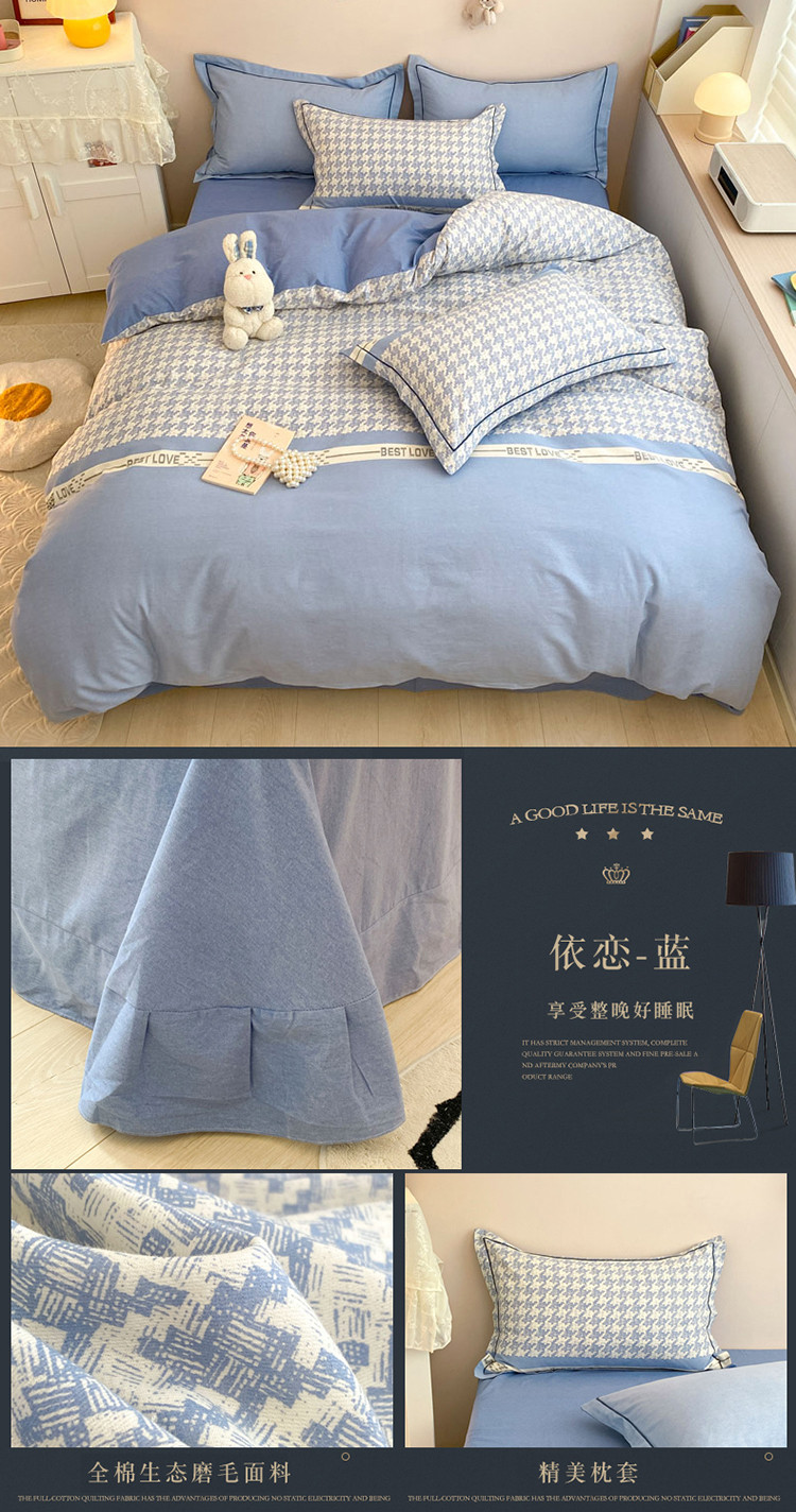 当前位置: 91家纺网 > 商品网购 > 床品套件 > 四件套 > 普通磨毛四件套 > 金爱家 2023新款全棉生态磨毛小清新四件套 依恋-蓝