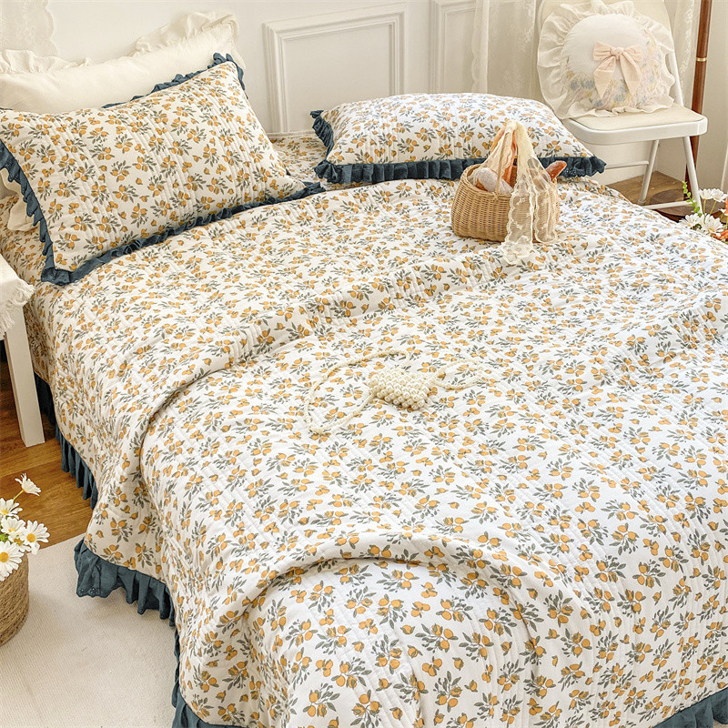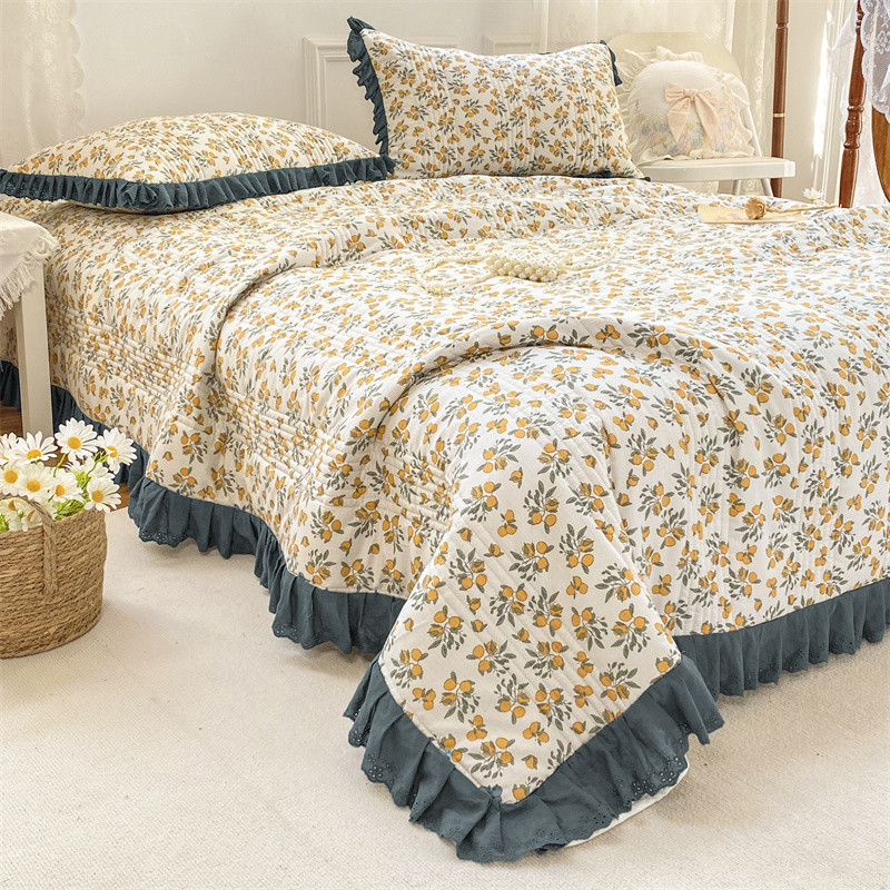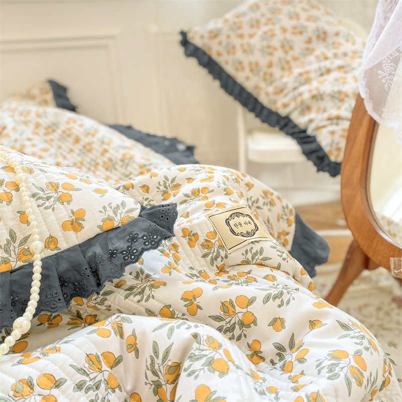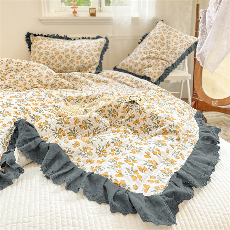 菊上家纺 2023新款春法式复古风全棉床盖 柠檬果