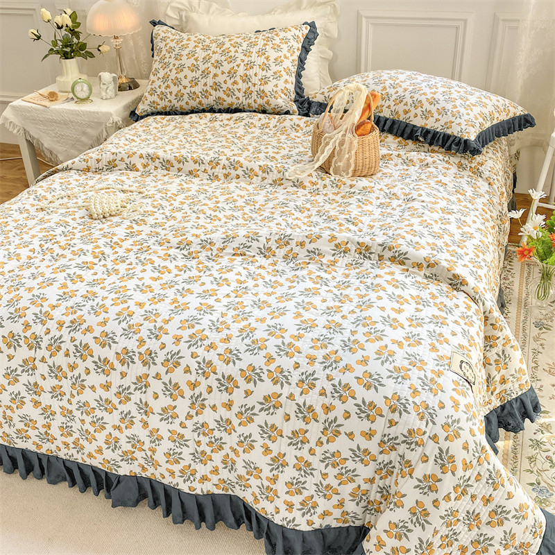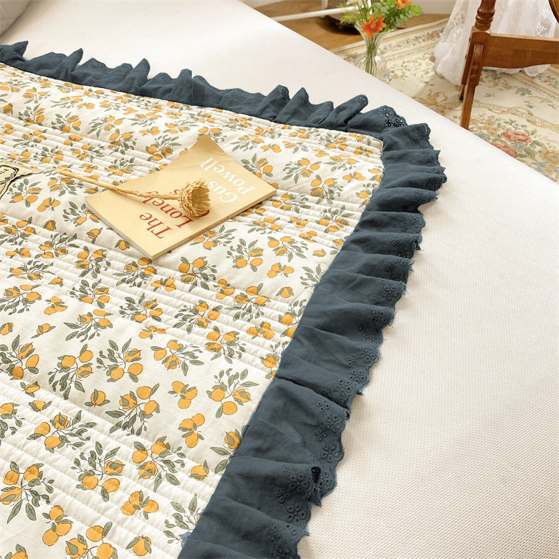 • 91家纺网 家纺一手货源 找家纺 菊上家纺 2023新款春法式复古风全棉床盖 柠檬果