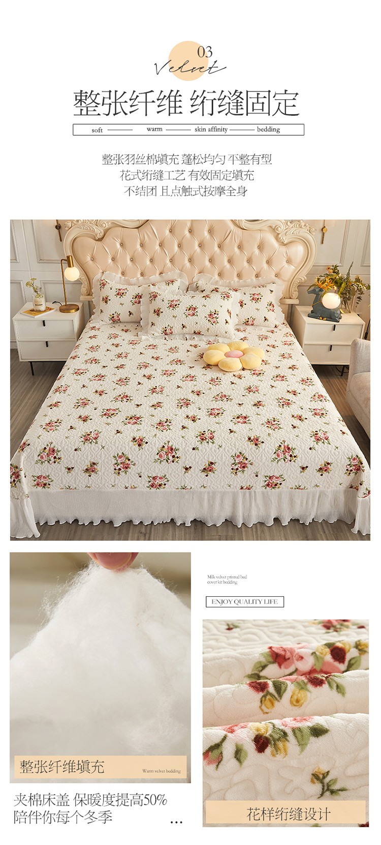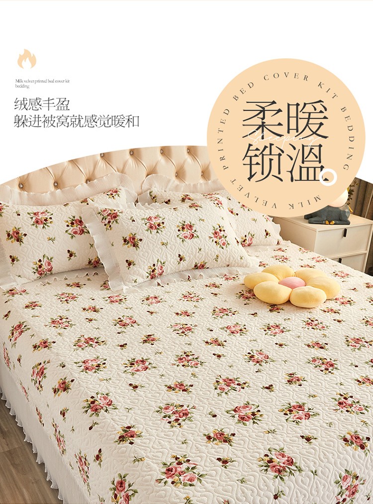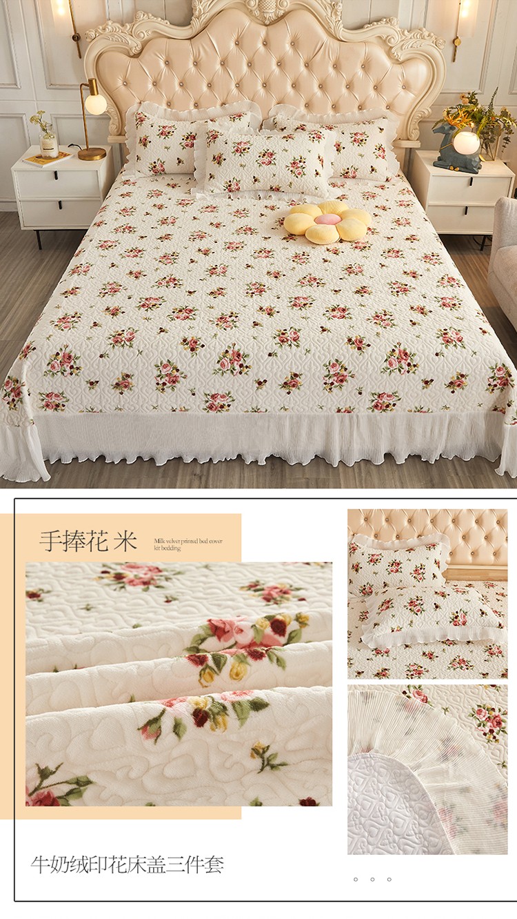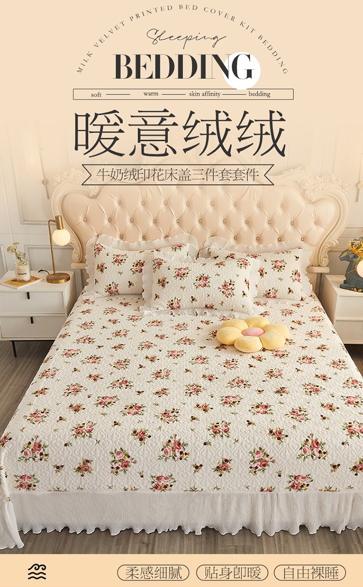 当前位置: 91家纺网 > 商品网购 > 床品套件 > 四件套 > 全棉普通四件套 > 宜凡 2022新款牛奶绒小清新床盖三四件套 手捧花 米