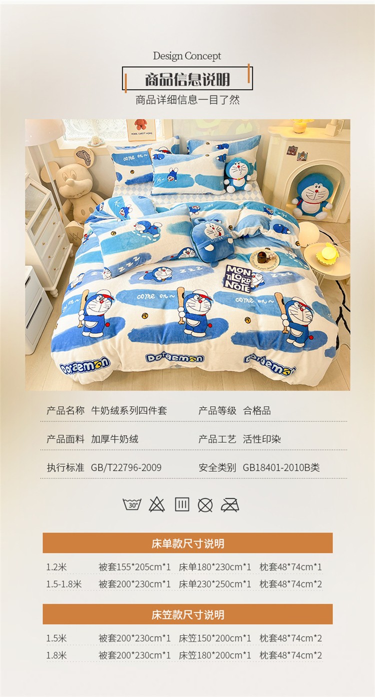当前位置: 91家纺网 > 商品网购 > 床品套件 > 四件套 > 牛奶绒四件套 > 桃子家居 2022新款正版授权卡通加厚牛奶绒系列四件套 绒哆啦A梦-棒球叮当