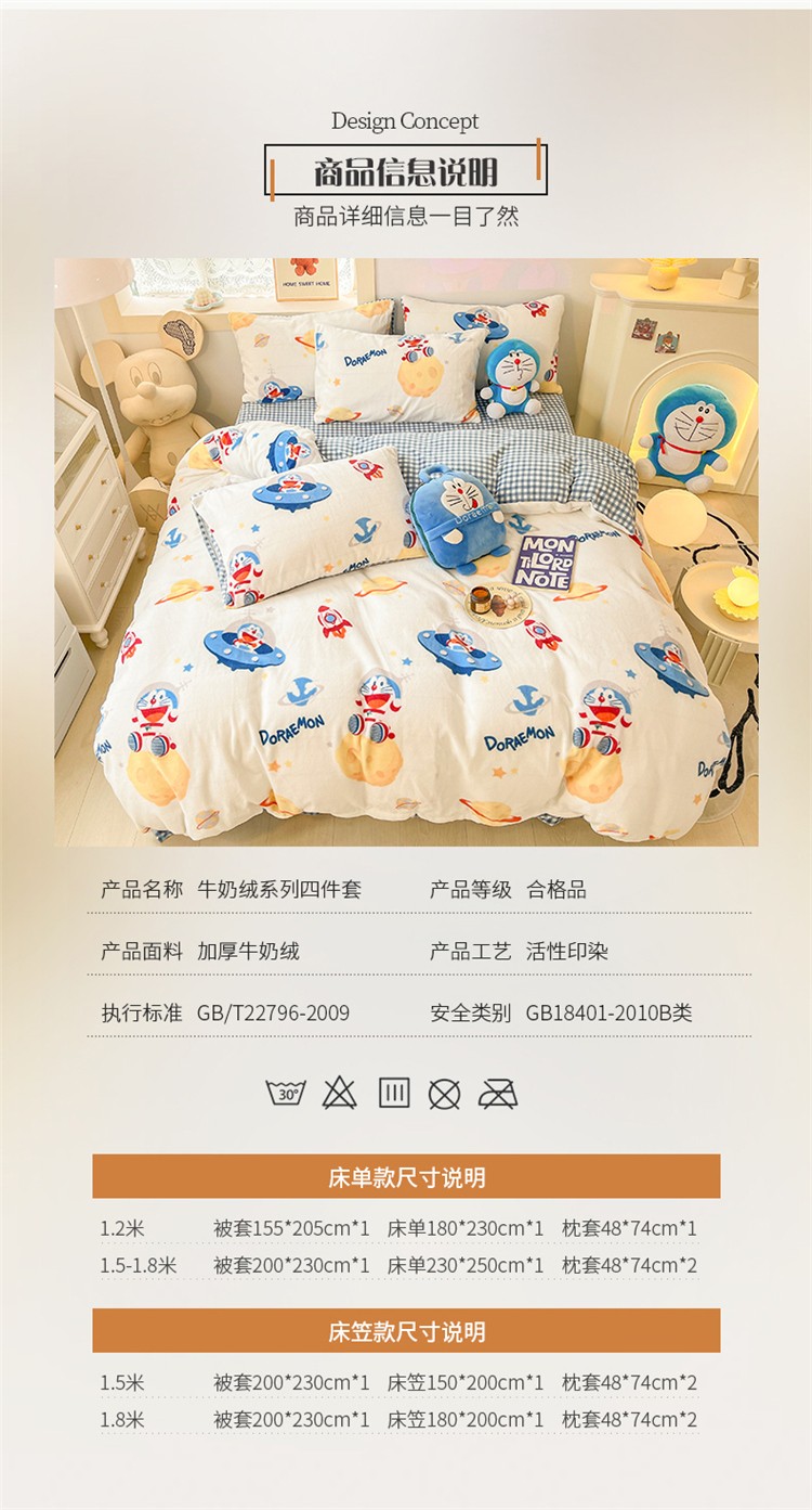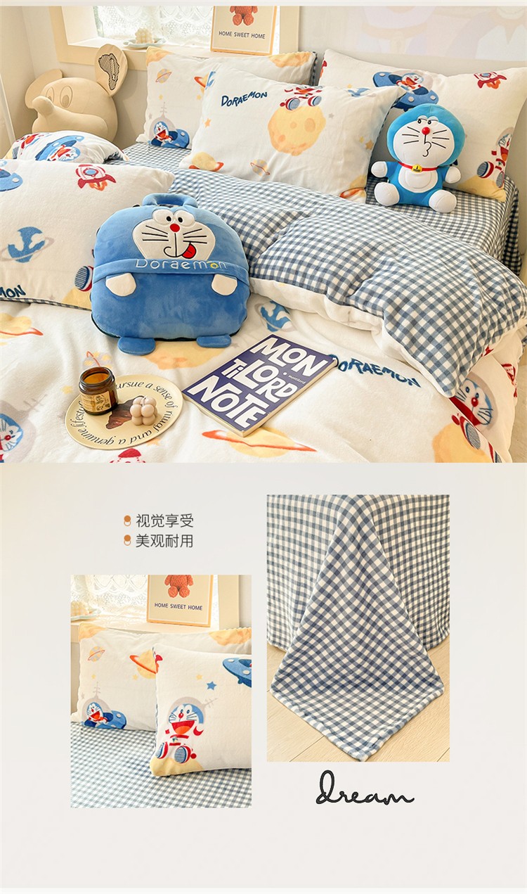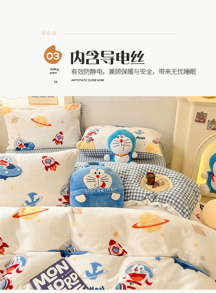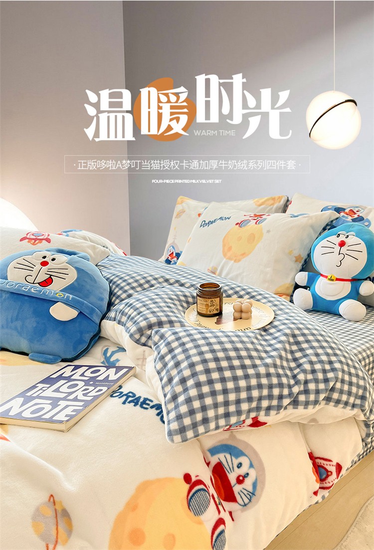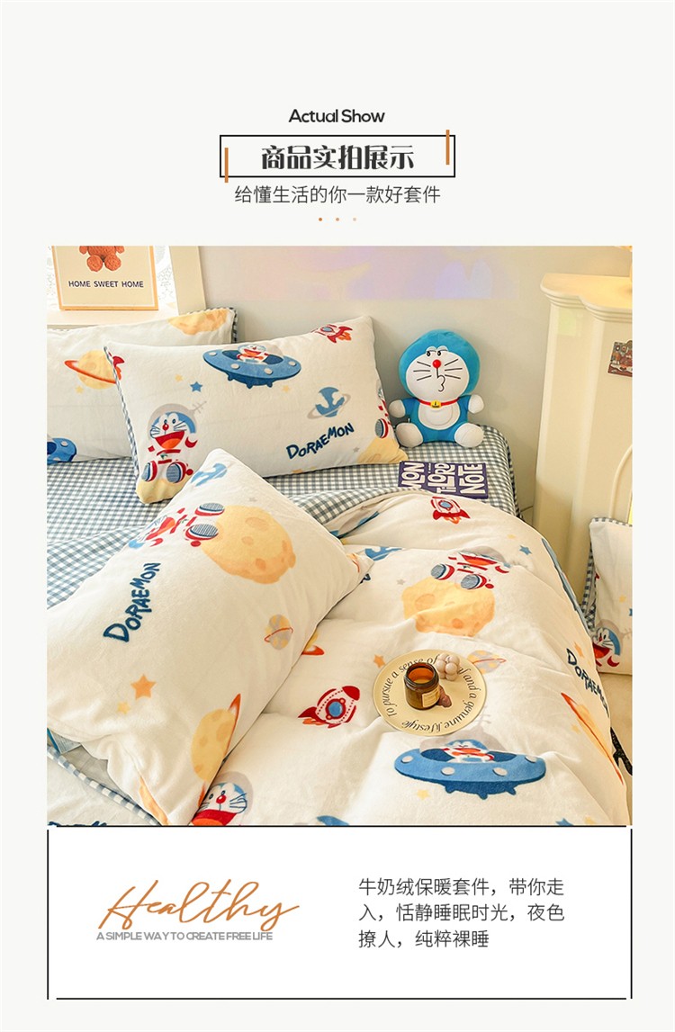 当前位置: 91家纺网 > 商品网购 > 床品套件 > 四件套 > 牛奶绒四件套 > 桃子家居 2022新款正版授权卡通加厚牛奶绒系列四件套 绒哆啦A梦-太空叮当