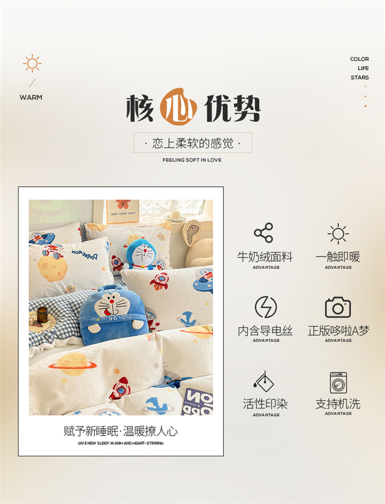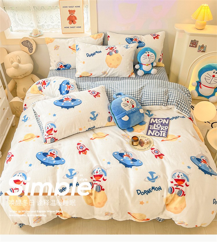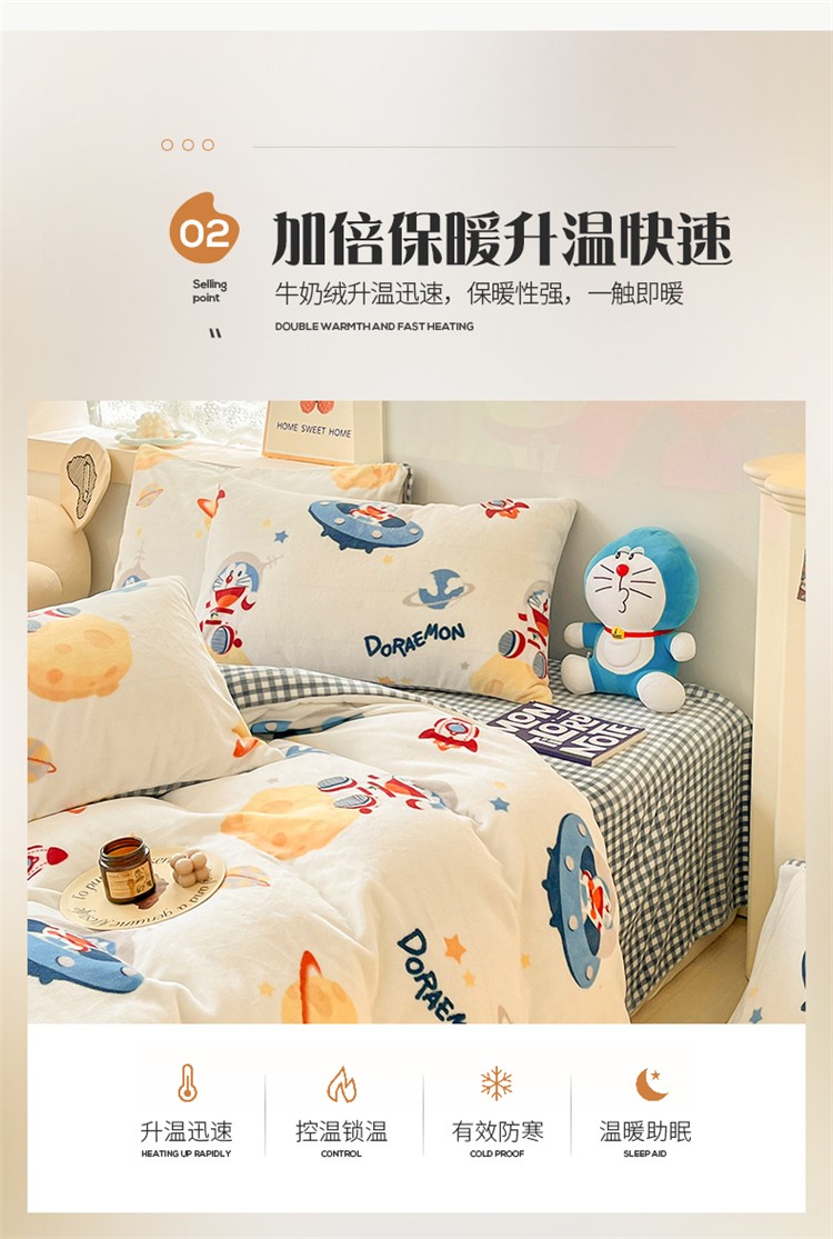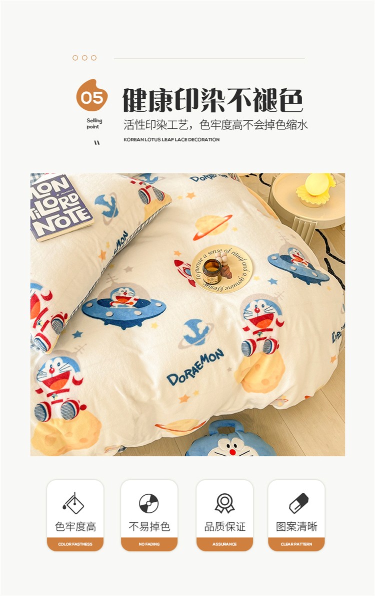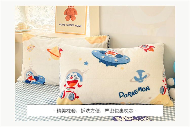 当前位置: 91家纺网 > 商品网购 > 床品套件 > 四件套 > 牛奶绒四件套 > 桃子家居 2022新款正版授权卡通加厚牛奶绒系列四件套 绒哆啦A梦-太空叮当