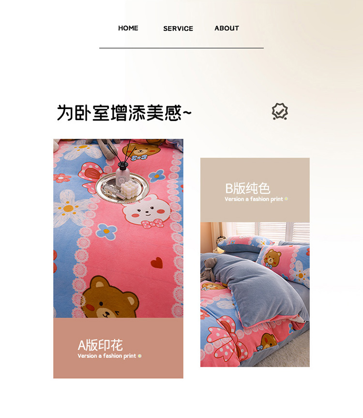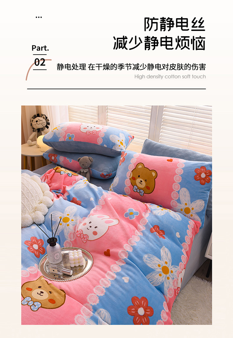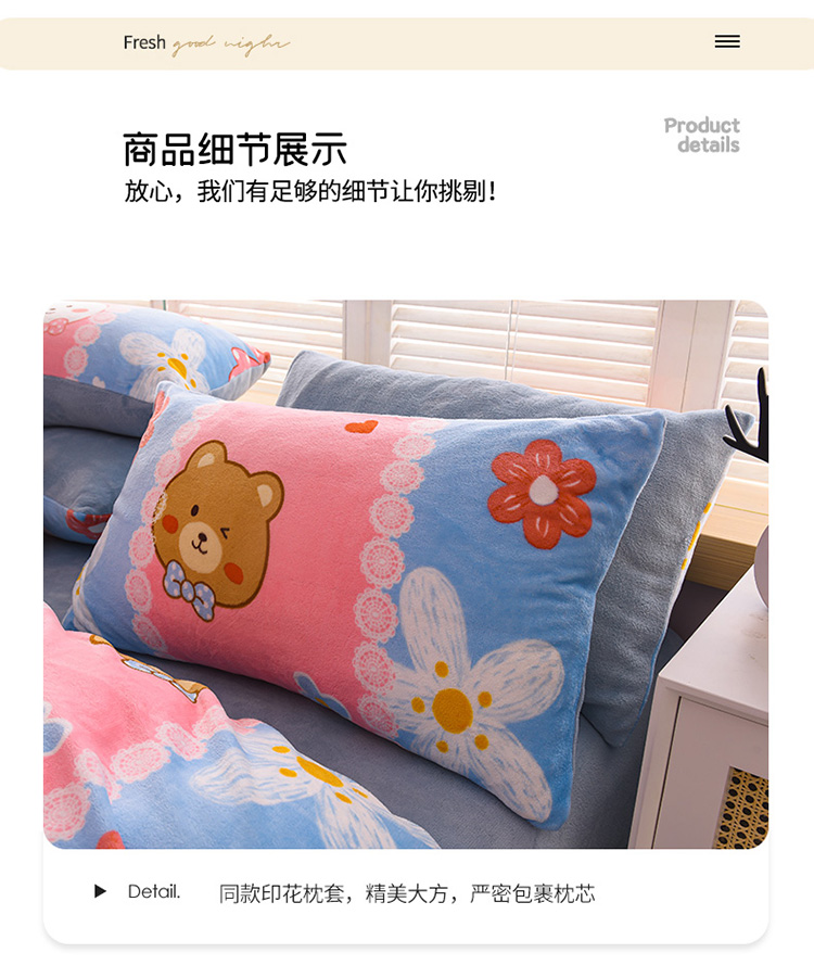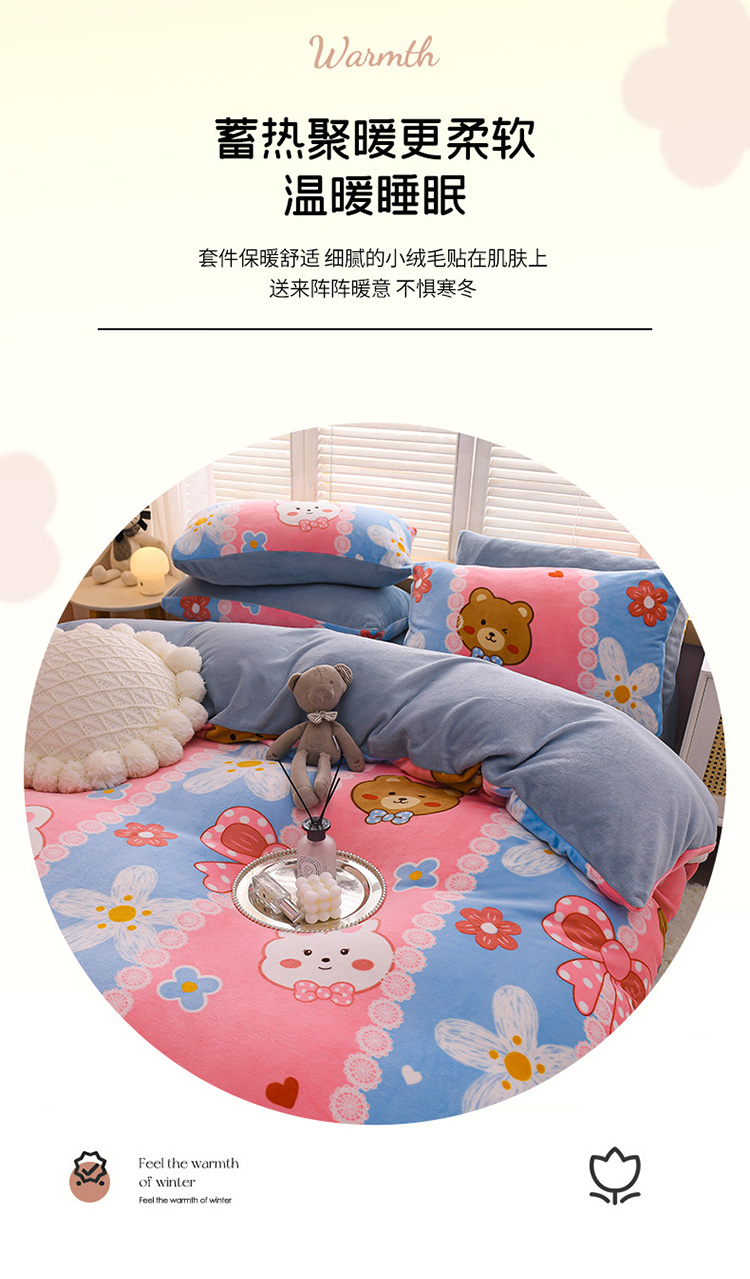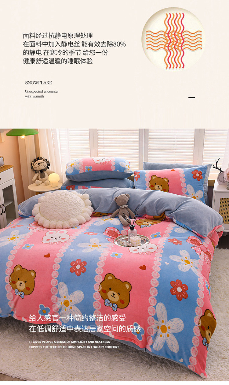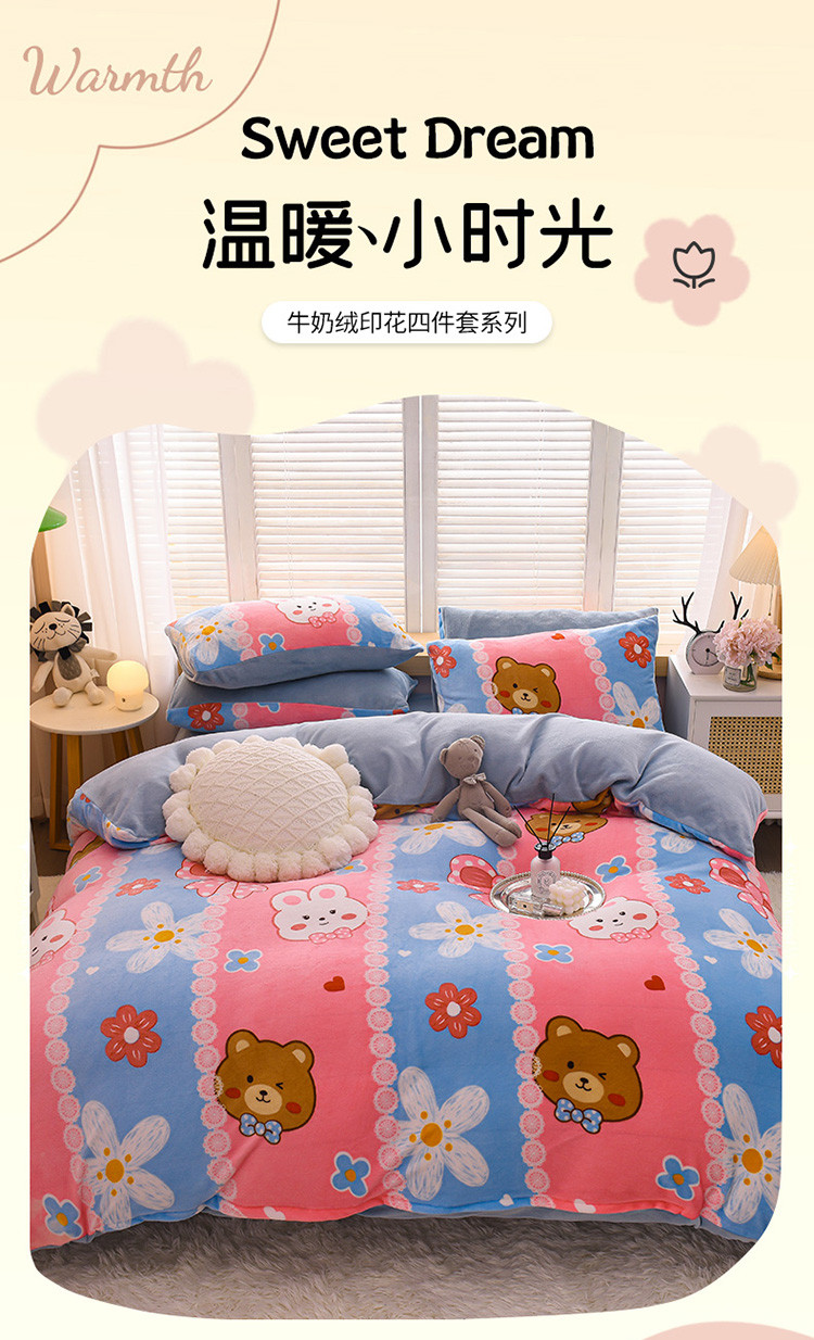 商品名称:芃成 2022新款加厚双面牛奶绒印花床品系列-四件套 小伙伴