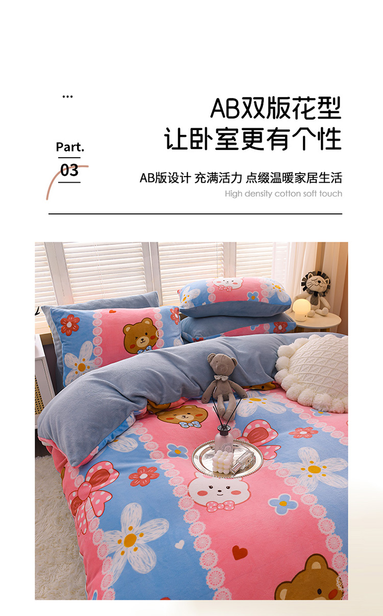 芃成 2022新款加厚双面牛奶绒印花床品系列-四件套 小伙伴
