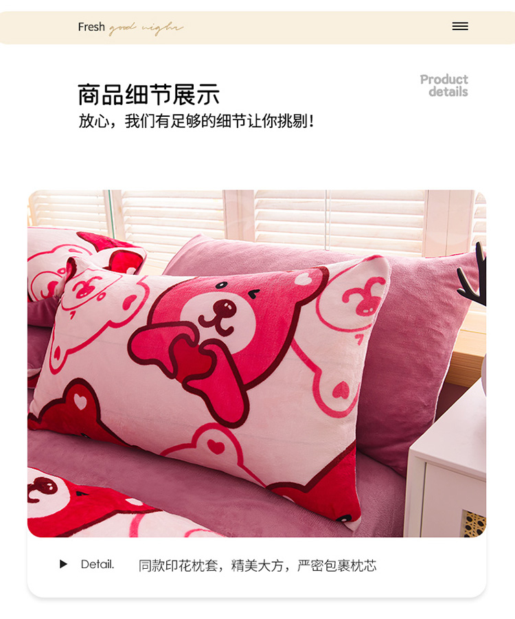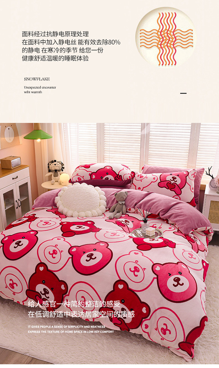 • 91家纺网 家纺一手货源 找家纺 芃成 2022新款加厚双面牛奶绒印花床品系列-单被套 酷酷熊