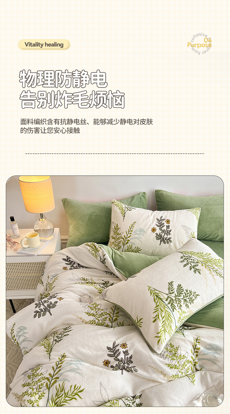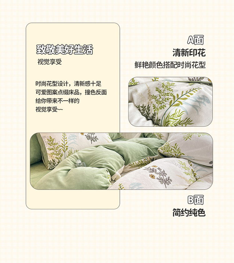 (总)澳梵家居 2025新款雕花牛奶绒韩版四件套-竹影柔柔,竹影柔柔,灰绿蝴蝶结,灰绿樱桃,卡其叶影,绿色叶影,漫调花语-粉,漫调花语-绿,玫瑰蝶语-蓝,玫瑰蝶语-绿,奶芙蝴蝶结,糖霜玫瑰-卡其
