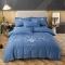 纽缦 2022新款纯棉加厚纯色绣花款床裙四件套 蝶恋花宝石蓝