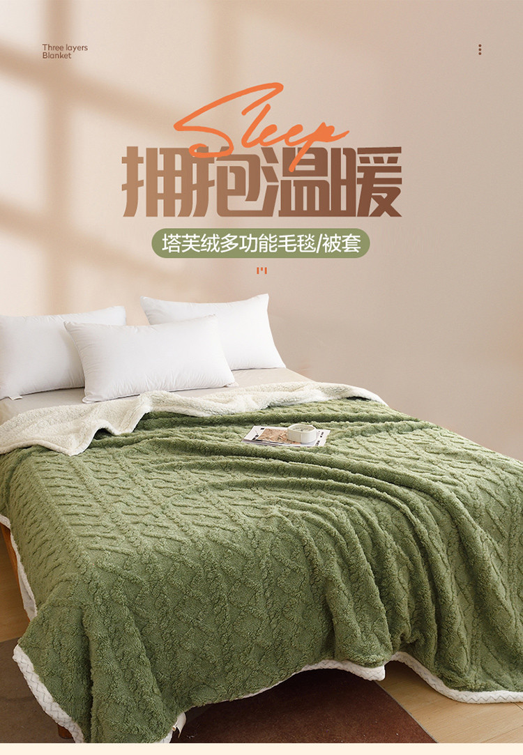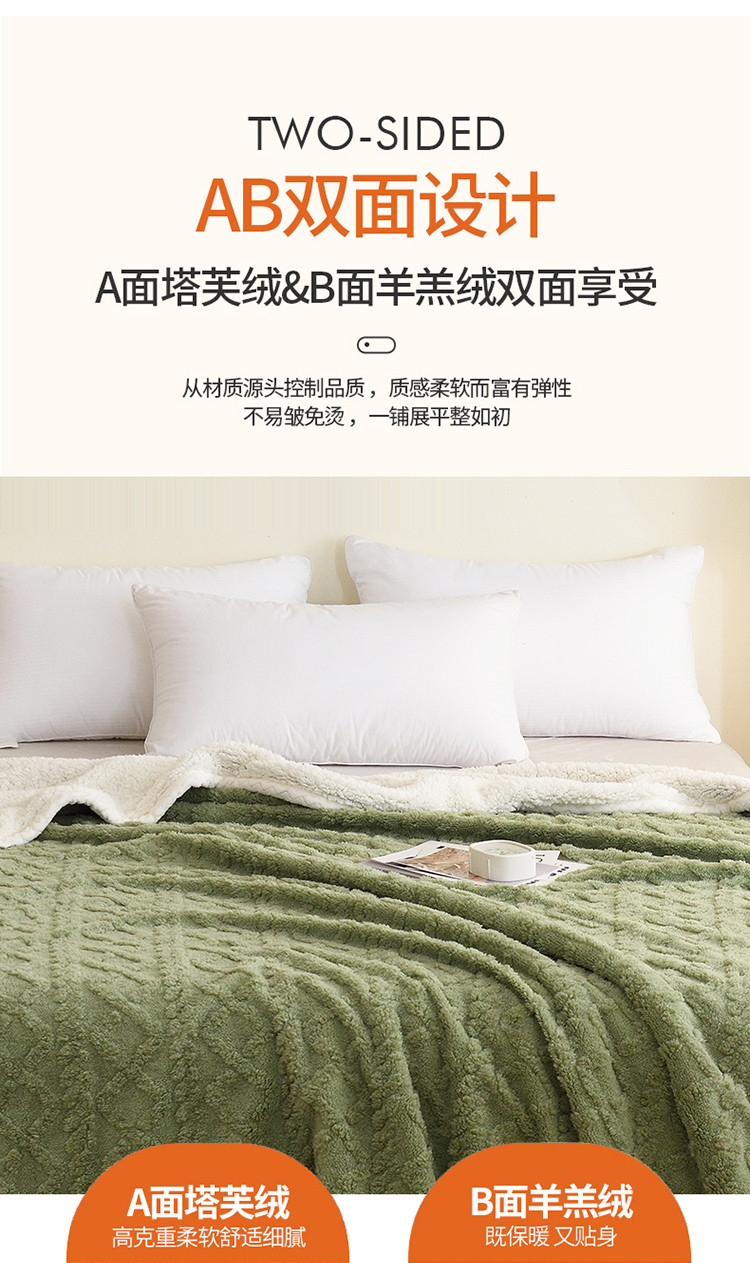 启优 2022新款AB版塔芙绒羊羔绒毛毯/被套被套 茶绿