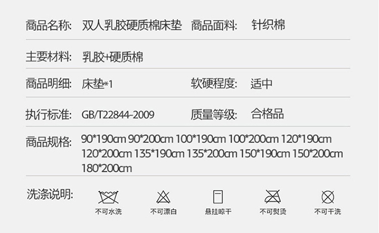 商品名称:(总)祁恋婷 2023新款双人乳胶硬质棉床垫【床垫遮盖物】