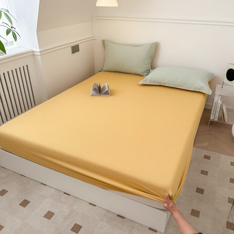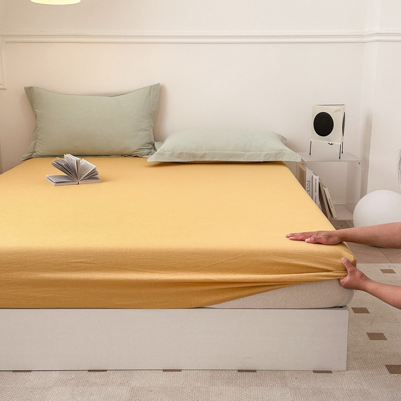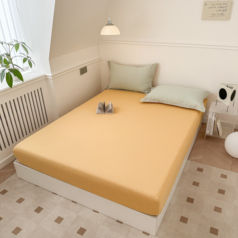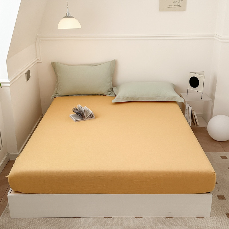 嘉汀兰 2023新款全棉色织水洗棉纯色撞色款单床笠 黄