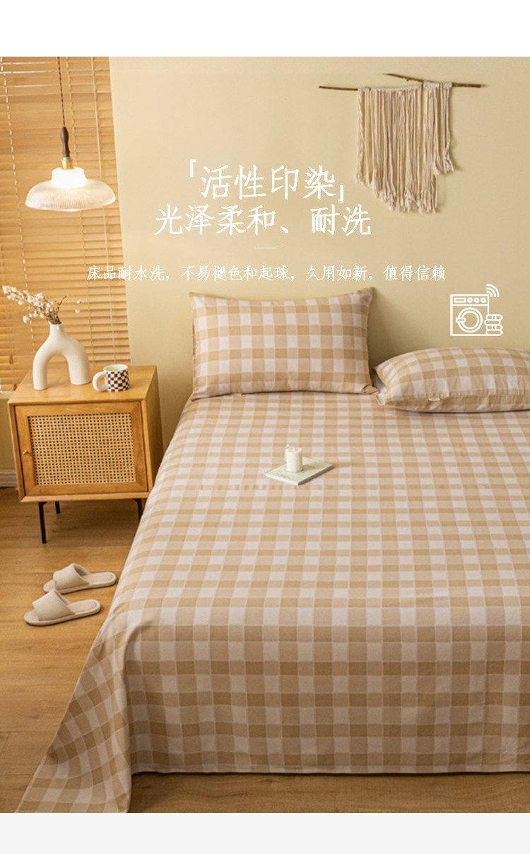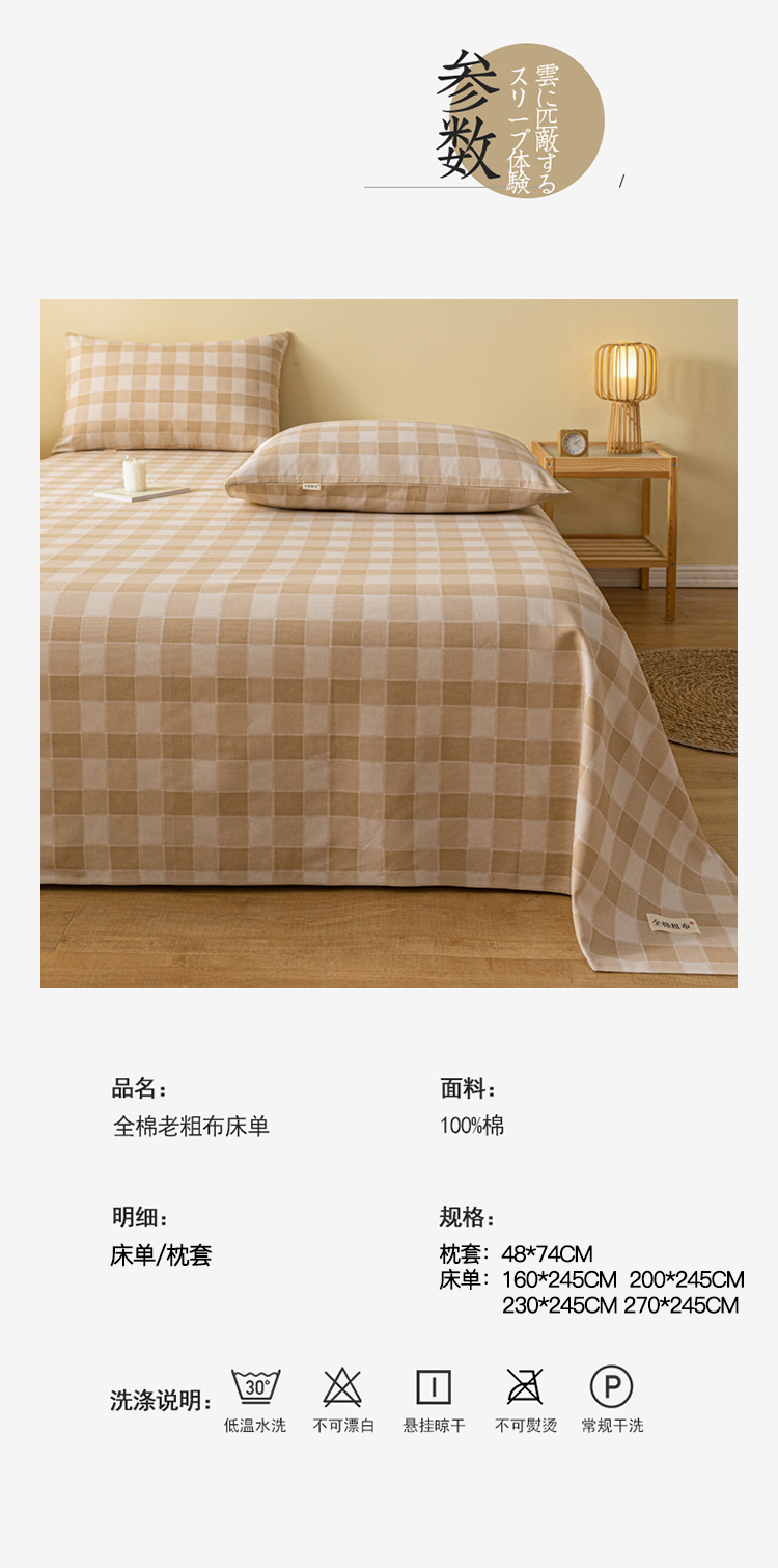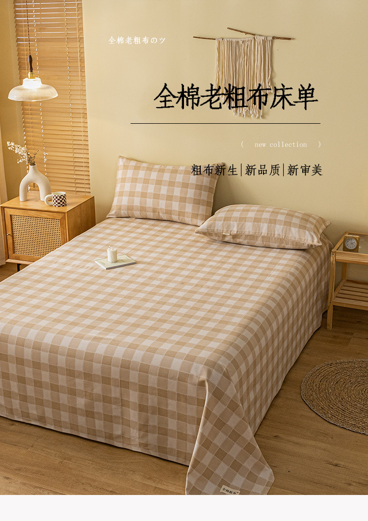 商品名称:卧趣家纺 2023新款全棉老粗布单品系列单床单 锦格-棕