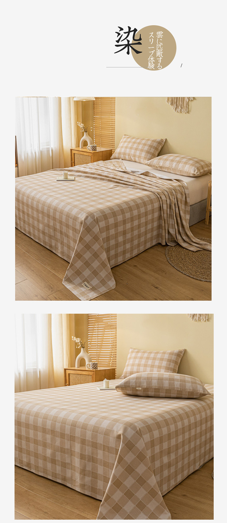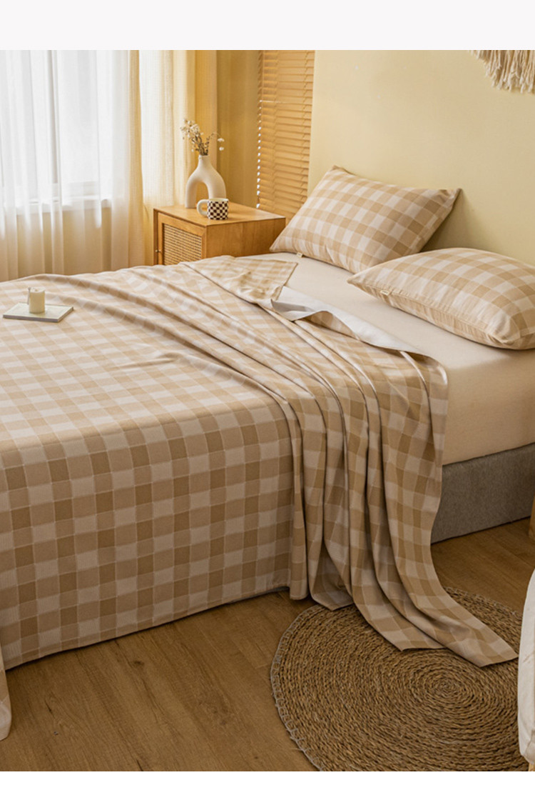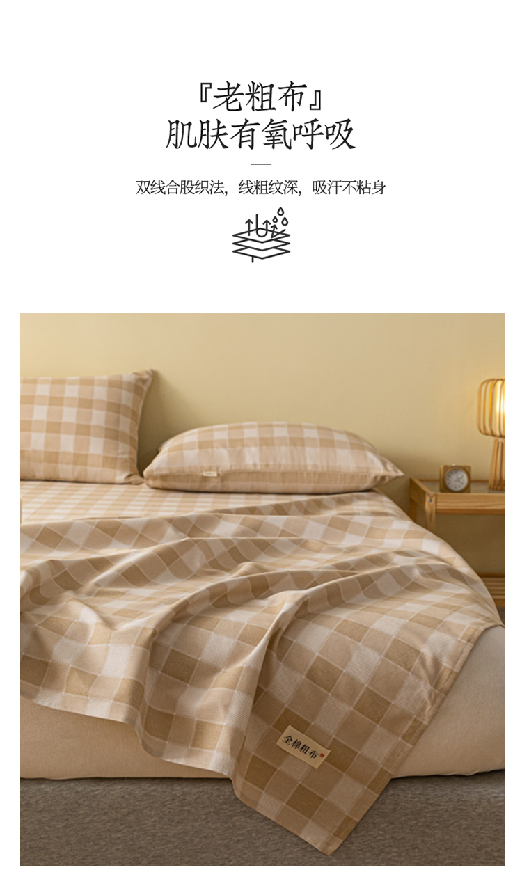 卧趣家纺 2023新款全棉老粗布单品系列单床单 锦格-棕