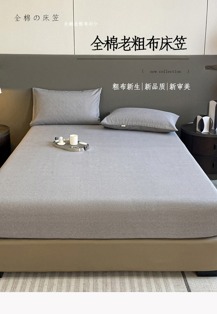 卧趣家纺 2023新款全棉老粗布单品系列单床笠 月白-灰