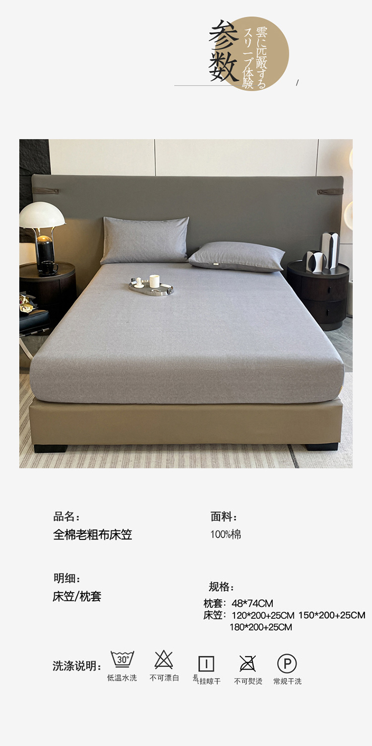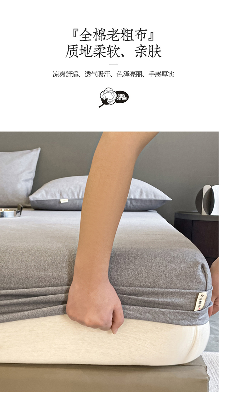 商品名称:卧趣家纺 2023新款全棉老粗布单品系列单床笠 月白-灰