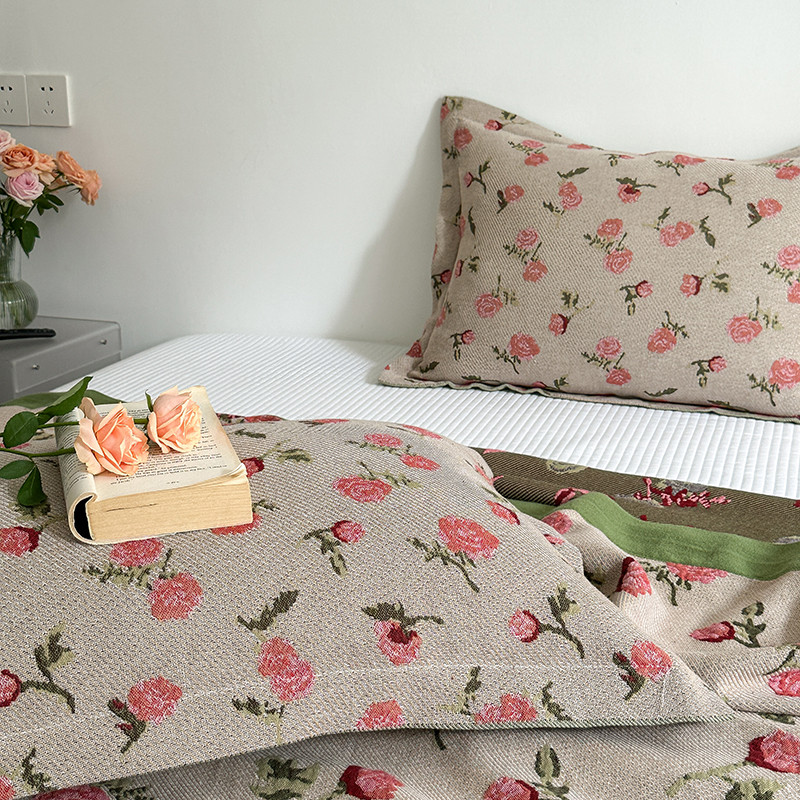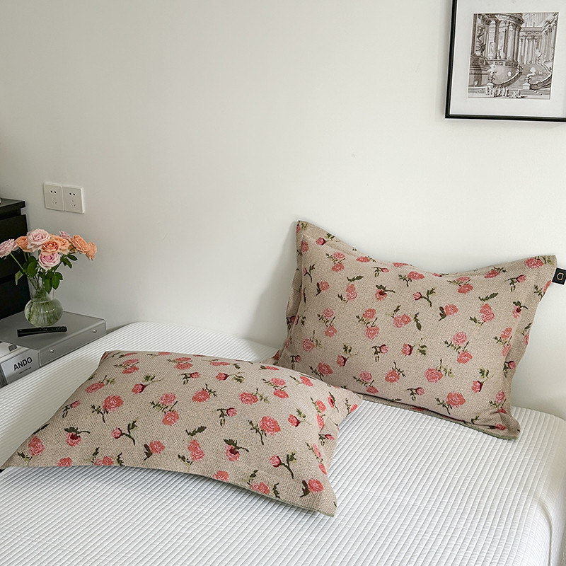 商品名称:麻依 2023新款全棉纱布枕套纯棉针织枕头套 玫瑰庄园