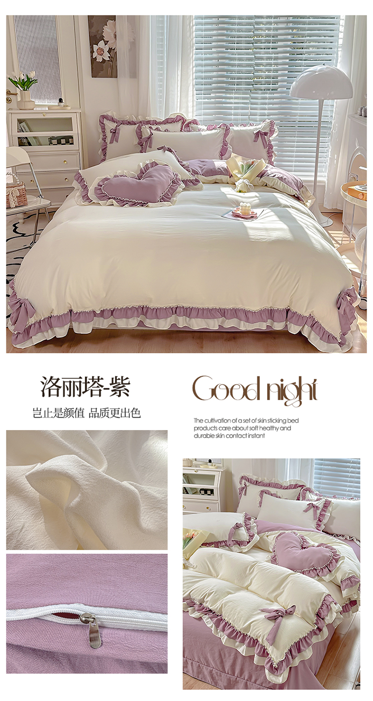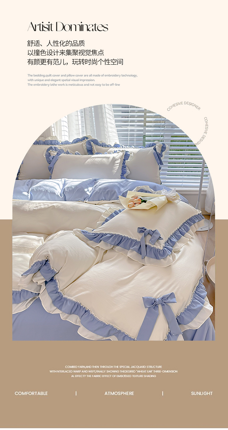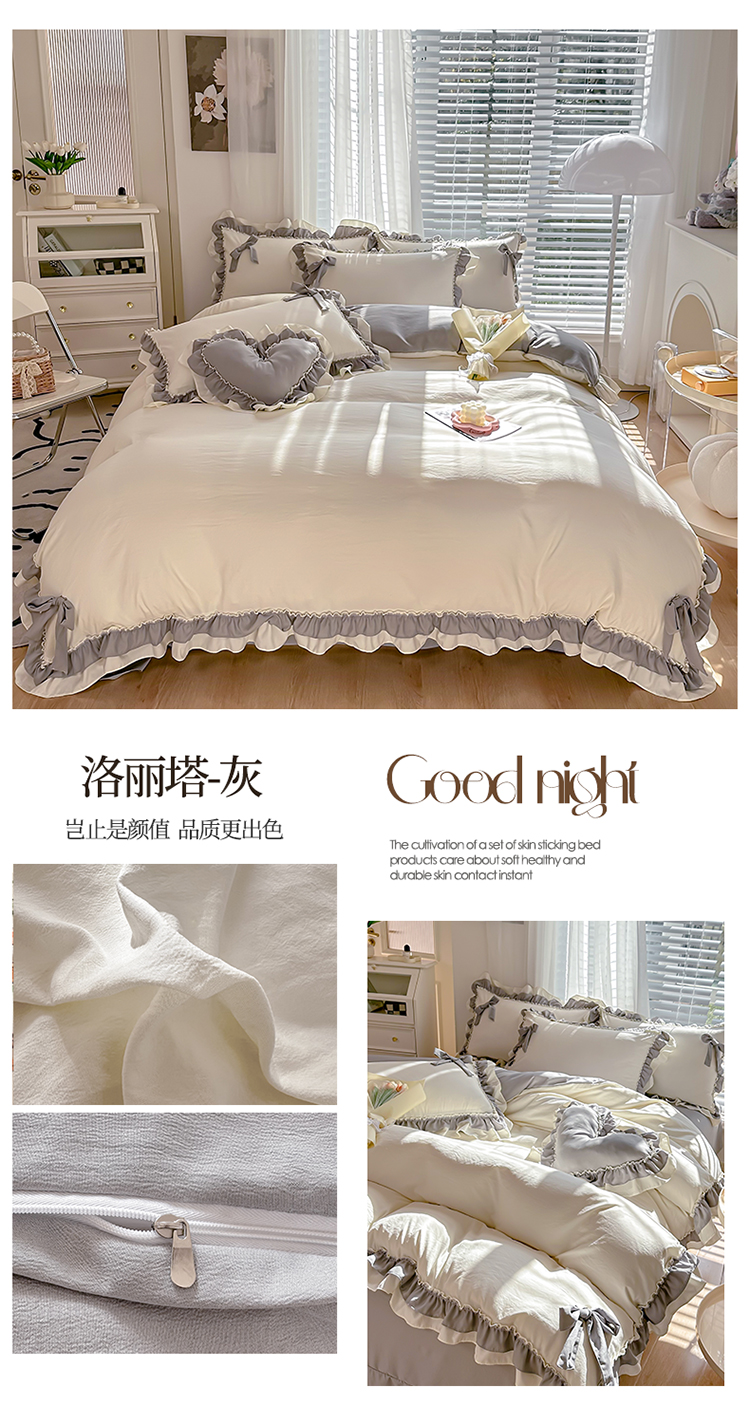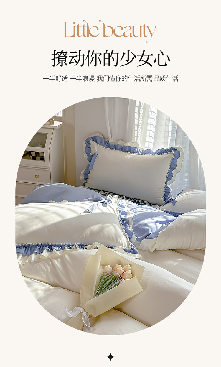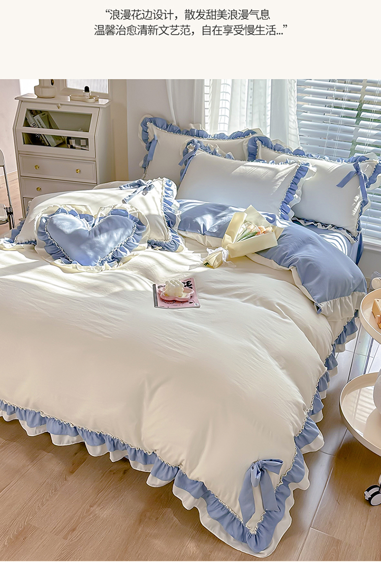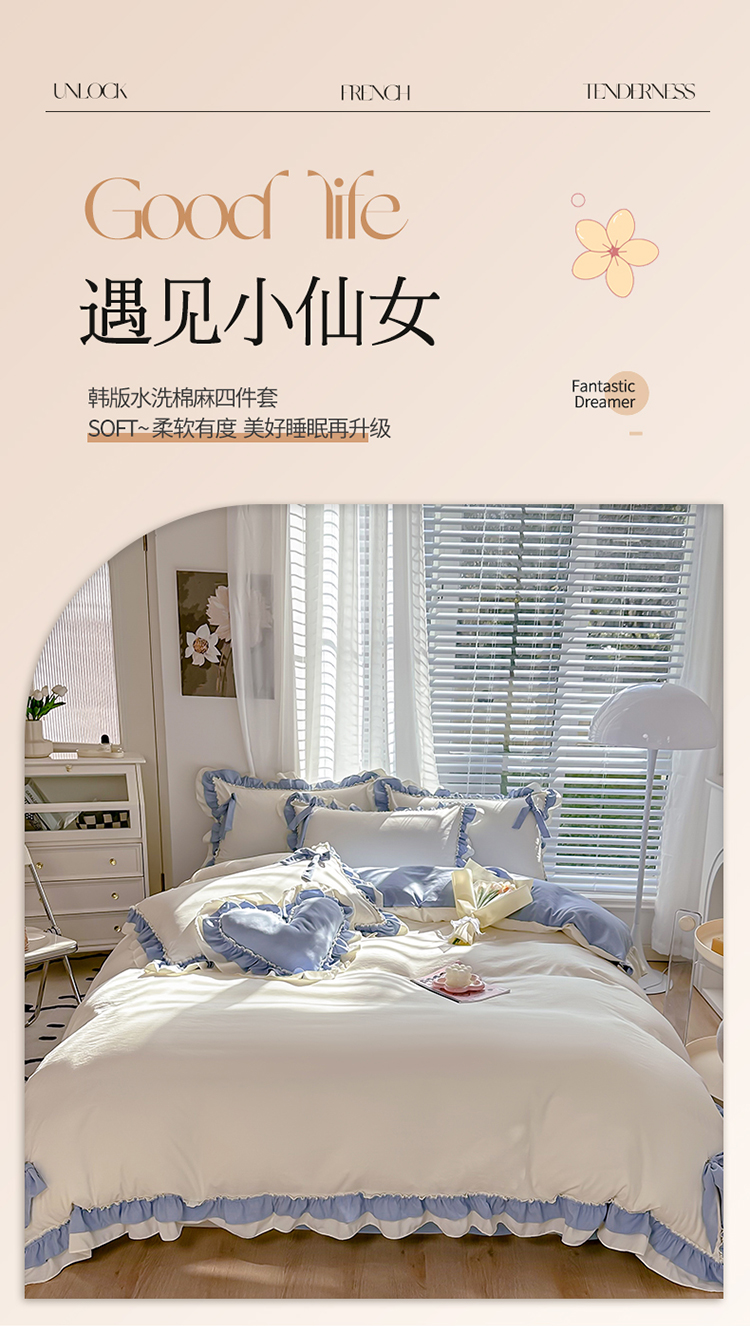 (总)言熙居 2024新款直播韩版花边水洗棉麻三件四件套小清新公主风