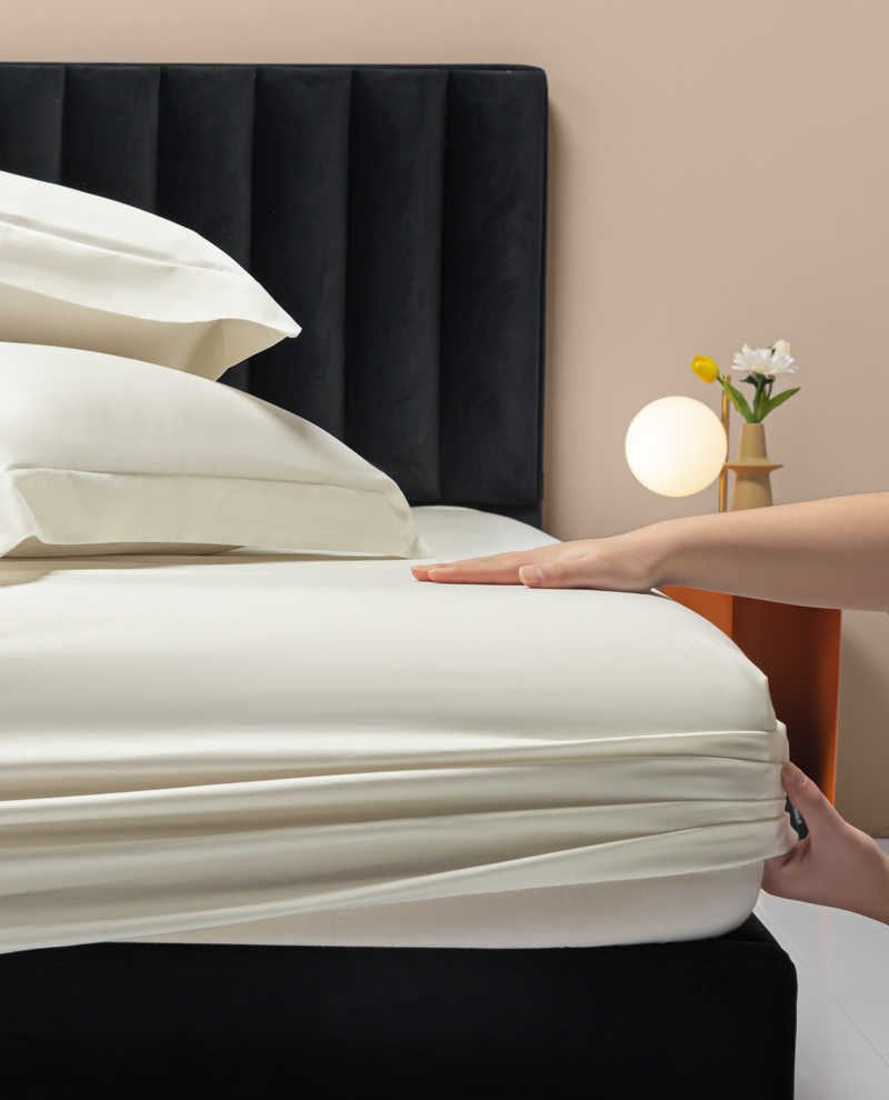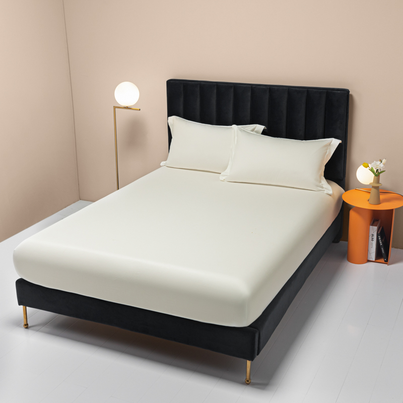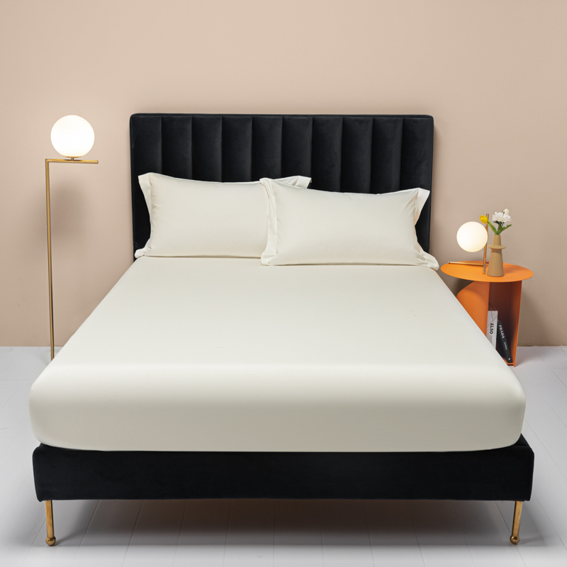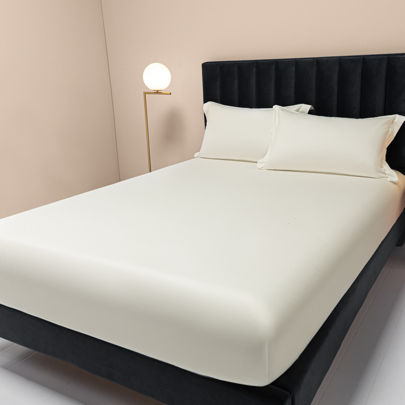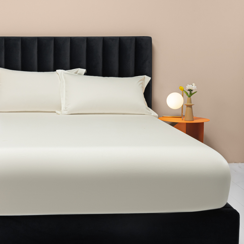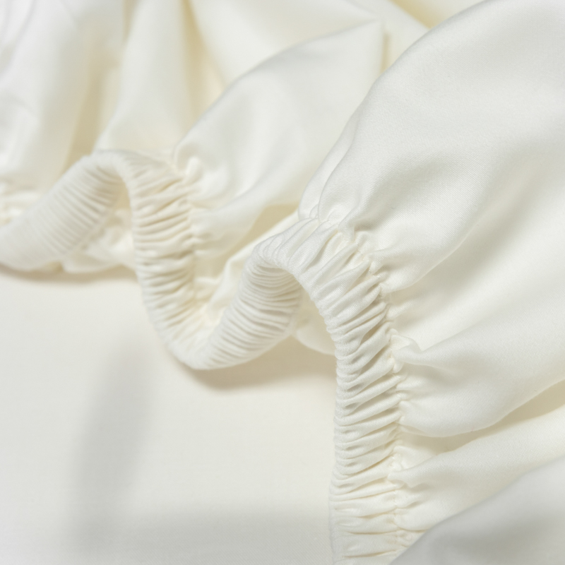 秀色家纺 2025新款A类50支贡缎双股长绒棉单品床笠皓月白