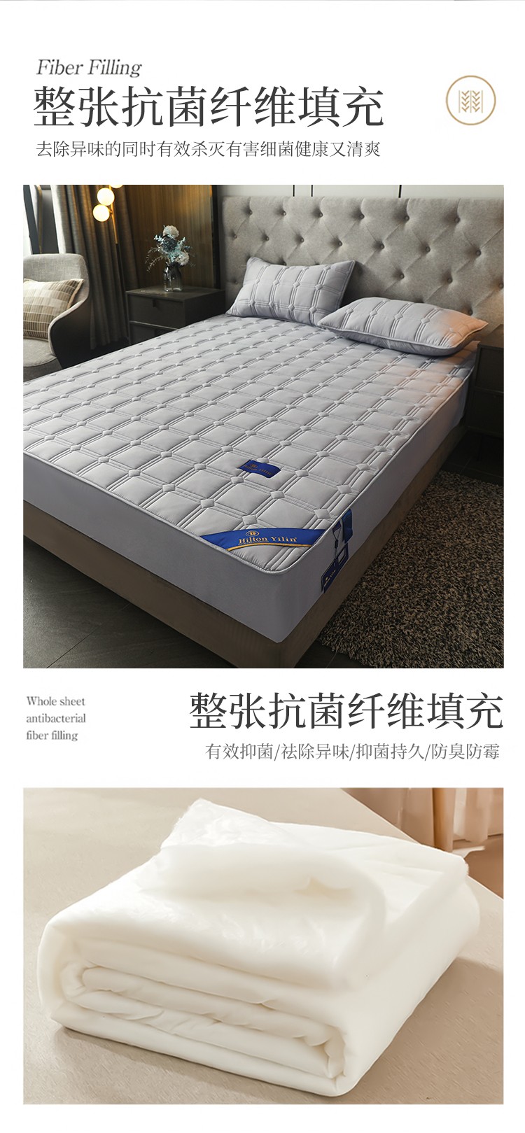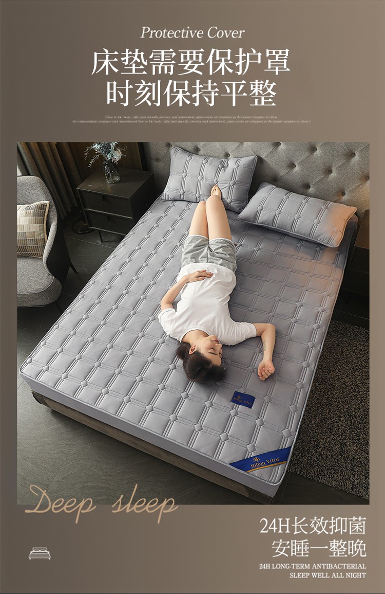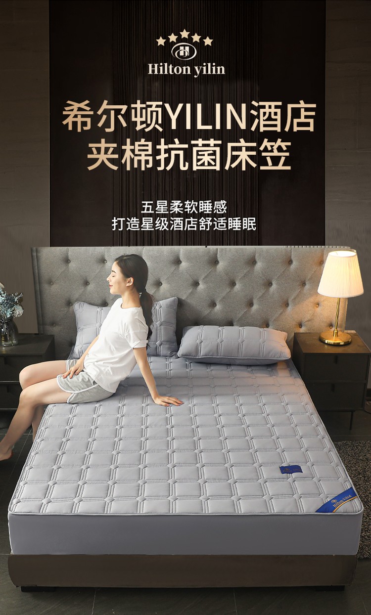 给笠 2024新款希尔顿原棉抗菌夹棉床笠-雅格 雅格-星灰
