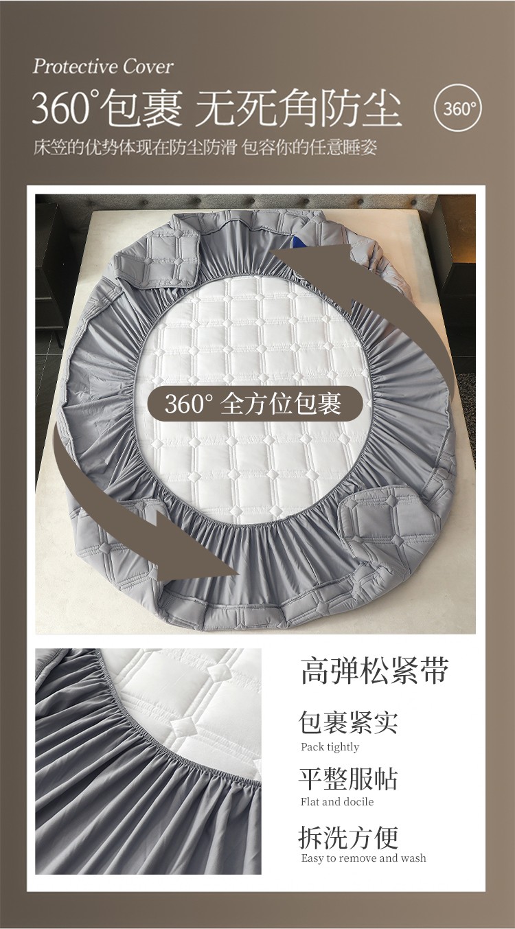 (总)给笠 2025新款A类超声波夹棉床笠,灰色,卡其,米白